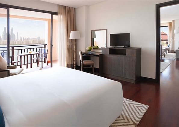 Unwind in a 38 m² Standard Room Residence with a private balcony overlooking beautiful lagoon pools, the Arabian Sea, or the cityscape of Dubai. Located in the Anantara Residences Building, this soundproof room offers modern comforts like air conditioning, a flat-screen TV, minibar, coffee machine, free WiFi, and a private bathroom.