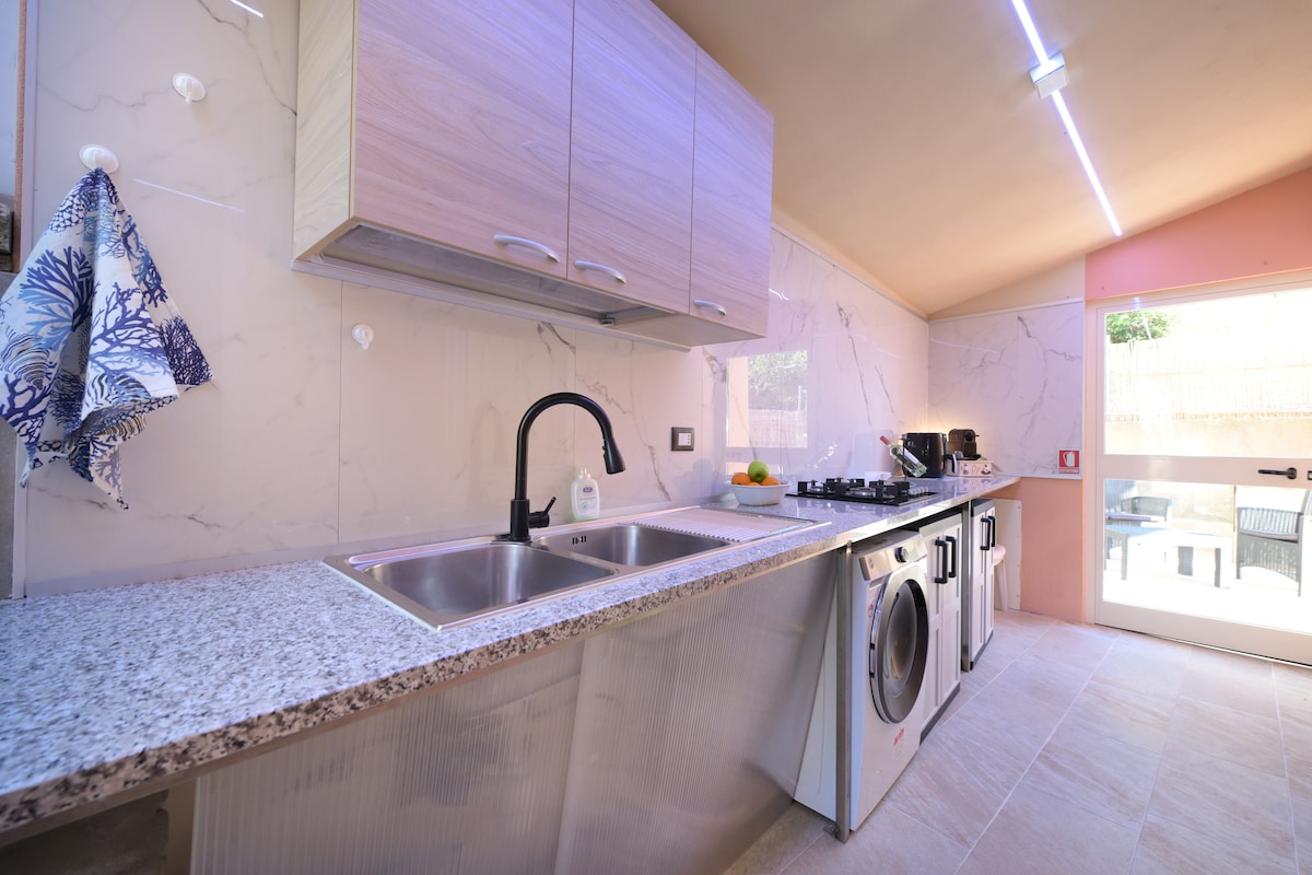 2 air conditioned bedrooms , bathroom ,kitchen ,terrace with an outdoor shower and a small garden :) Every bedroom has a separate entry. Up to 2 People you get 1 bedroom. 3-5 People you get 2 bedrooms :) Even if you are in 2 the house is always private,Just for you :) We have Beach umbrellas, beach towels,WiFi,toys. But the most important fabulous landscapes that you will never forget! On arrival tourist tax to pay, 2 euro per person per day. Cod IUN S3397