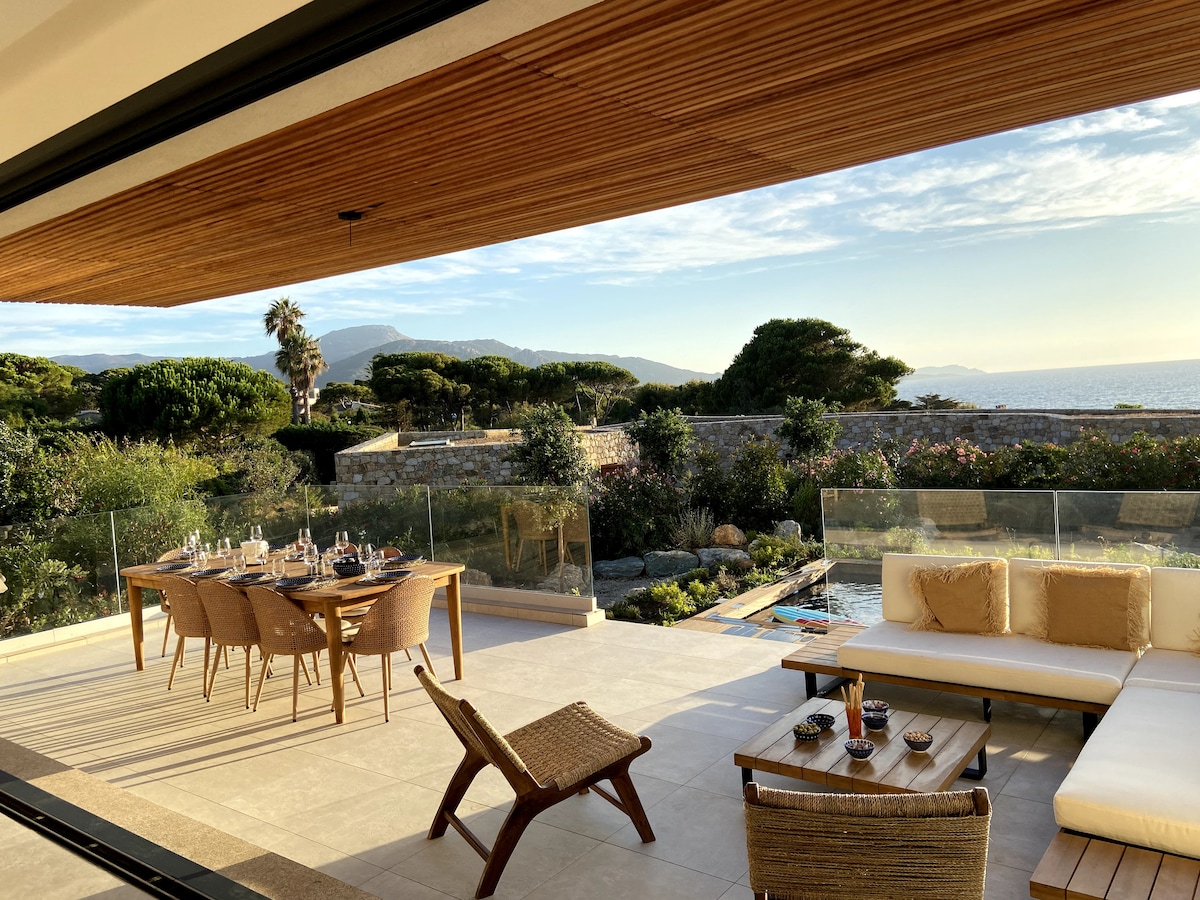 New single-story villa with heated pool, surrounded by olive trees and splendid sea views, in a quiet location. 5 minutes from Bodri beaches. Only 20 min from Calvi St-Catherine Airport and 5 min from the center of Ile-Rousse. 3 private master suites, 3 bathrooms Kitchen opening onto the terraces facing the sea and pool. Large terrace facing the sea, studious patio for your meals sheltered from the wind. Designed and decorated with great care. To make your vacation unforgettable.