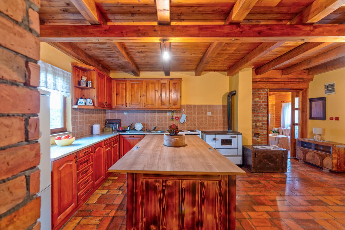 The cottage is built with natural materials, following sustainable principles, and is part of a traditional rural household, close to homemade food and farm animals. There’s no kitchen, but we offer meals from our menu that you can choose as needed. It features a TV, Wi-Fi, and a large desk for two. A special treat is an afternoon rest in the built-in tub overlooking the forest.