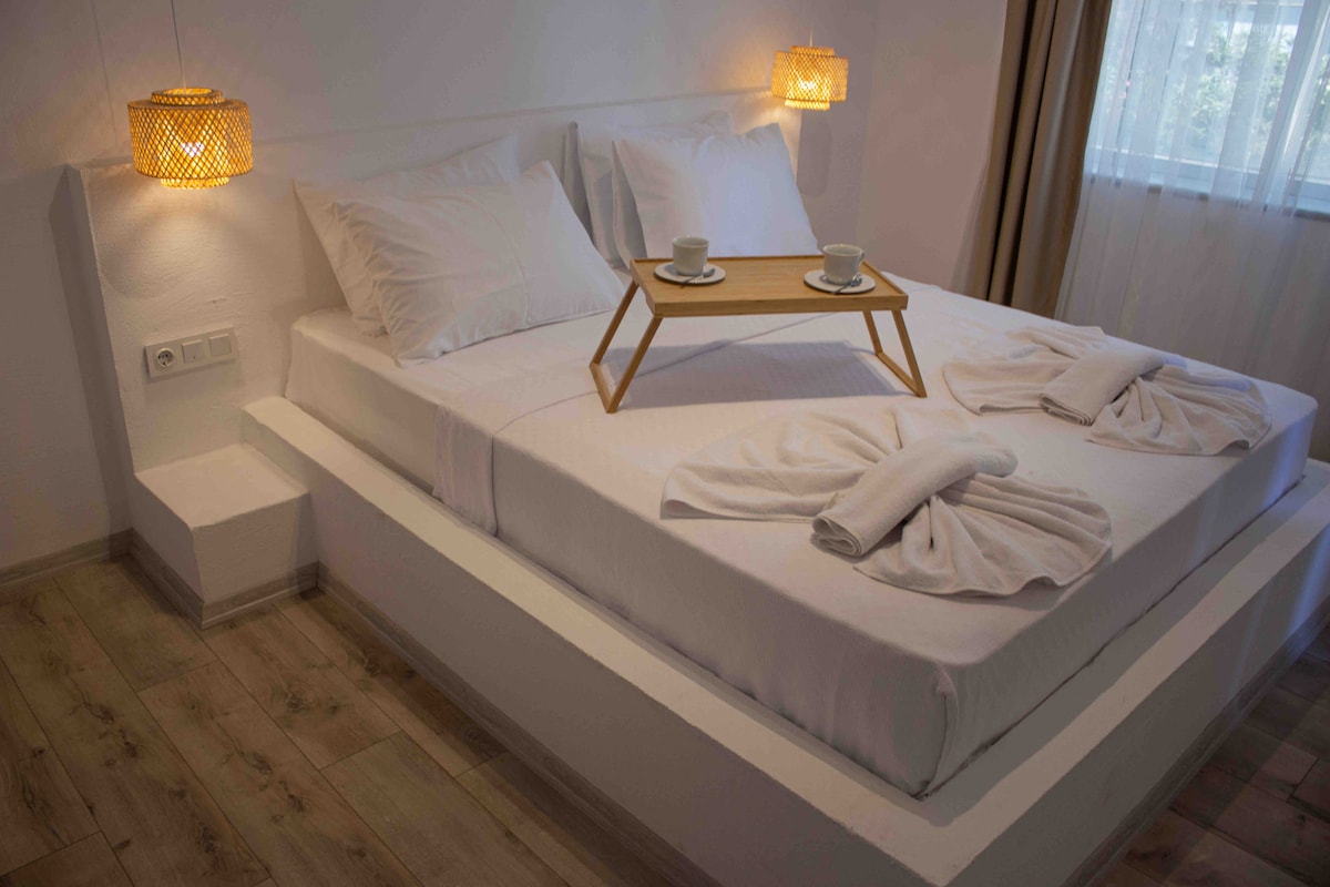 Our hotel, which is 40m walking distance to the sea, is ideal for family accommodation with its spacious and self-catering rooms. We offer our guests a holiday in the comfort of home. You can also join our rich open buffet breakfast at Bade Restaurant for an additional fee. You can enjoy our delicious meals and cocktails at our Bade Restaurant with a 10% discount. You can also benefit from our free sun loungers and umbrellas during your stay.