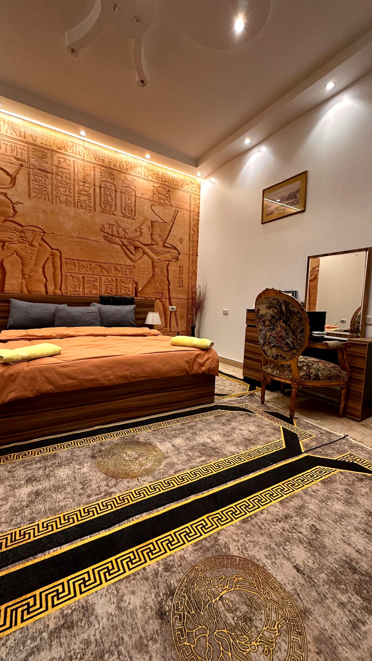 استمتع بتجربة فاخرة عند إقامتك في هذا المكان المميز مكان هادئ ونظيف ويطل علي الاهرامات ويوجد رحلات للمعالم السياحيه