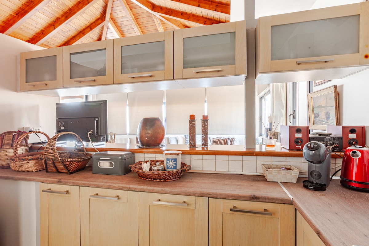 Traditional stone house with 2 big outdoor places to enjoy your breakfast at the rooftop with a breathtaking view or relax at the yard accompanied by the warm stillness of a summer afternoon. Ideal place for people who search for peacefulness and a nature getaway.