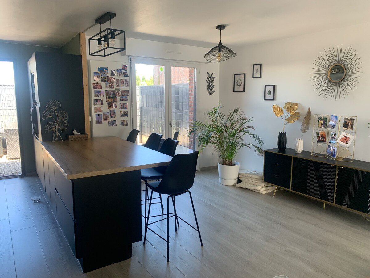 Our accommodation is 15 minutes by bus from Lille Europe train station (bus stop 100 m away). The neighborhood is quiet and parking is free. You have a lot of shops nearby (including the best bakery in the North) / cinema / restaurants…) Features a kitchenette (dishwasher), sofa bed, double bed upstairs. Free Wi-Fi access (fiber + channel + Netflix + Prime, etc.) Nearby is a large municipal park with children's games and the opportunity to take a short walk 😀