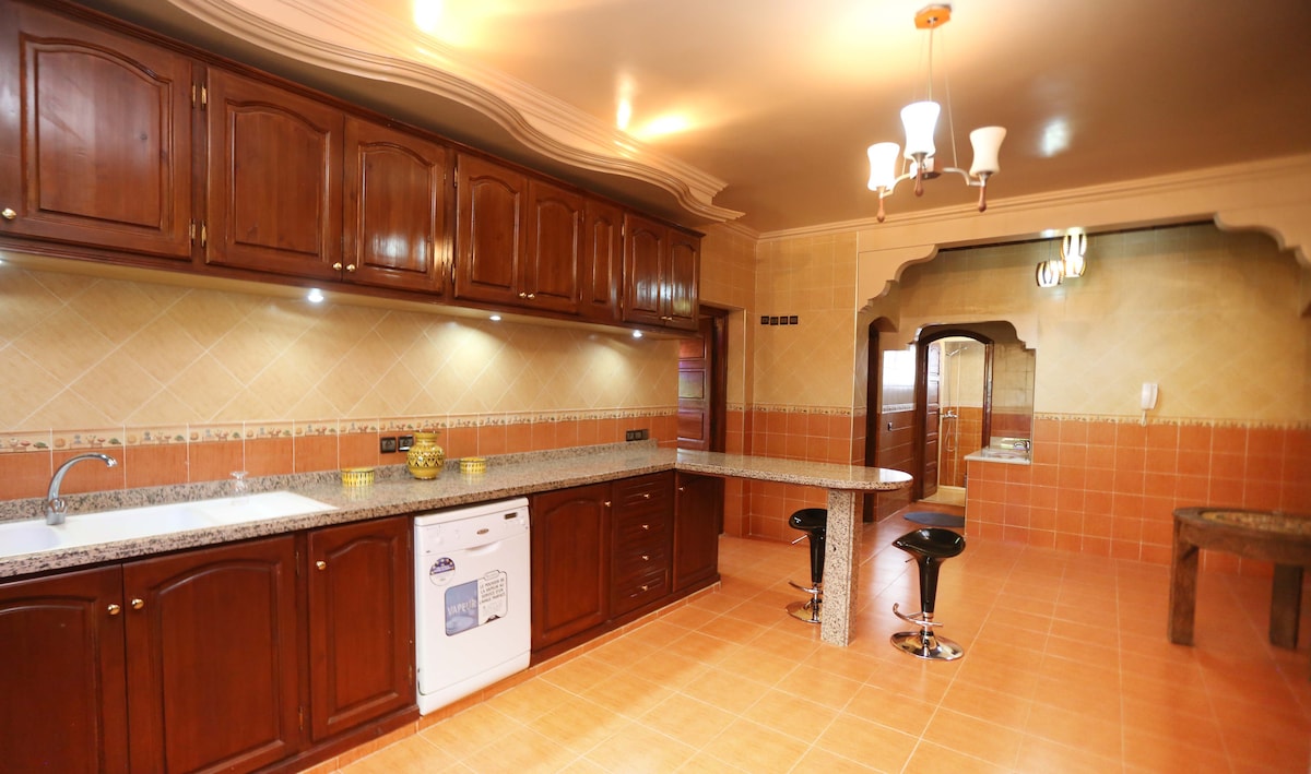 Beautiful villa with character 15/20 minutes driving from the Medina and the center. Big garden, swimming pool and house completely privative with possibility of yoga, class, massage indoor and outdoor in our garden spa Price for lunch per person including bfast or diner 25 euros The staff is discreet and attentive cleaning everyday included. Adapted to the smallest with all necessary equipment We can organiseday spa, tour guide in Marrakech and around for a day or half-day.