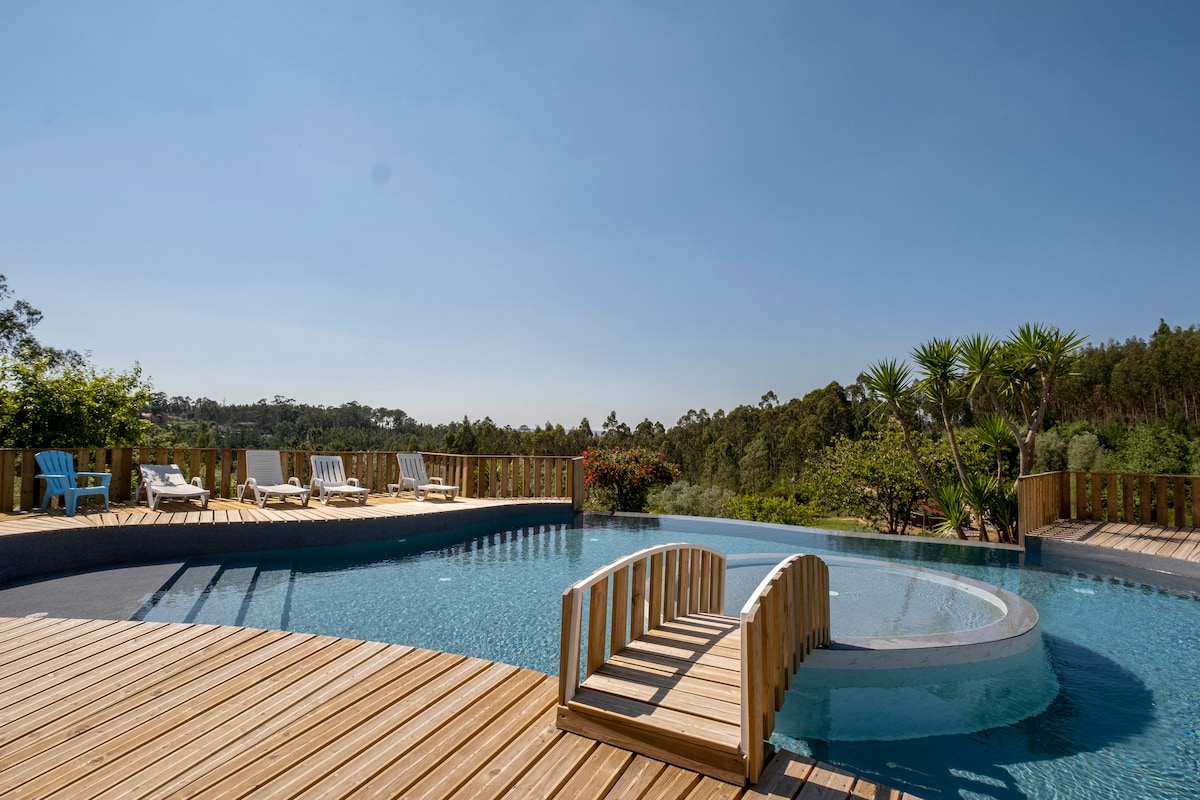 Fully restored old house with secure heated pool, ideal for families. Located 15 minutes from the beaches of Nazaré – Paredes – São Pedro. You can visit tourist sites such as Leiria Castle (15 min), Bathala Monasteries (10 min) and Alcobaça (20 min), Fatima Sanctuary (25 min) and the medieval city of Obidos (35 min). You are in the heart of a region of gastronomy and culture, just over an hour from Lisbon. Welcome to José and Delphine's.