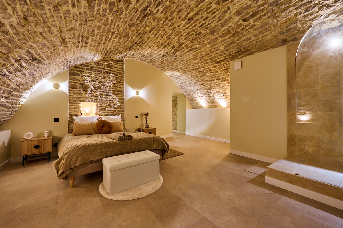 In the heart of the city of the Dukes of Burgundy, we invite you to discover the Bacchus suite. This former bakery and its vaulted cellar, which in its time served as a workshop for the craftsman, now welcomes you in a luxurious loft refurbished for a stay in the wine and gastronomic capital of Burgundy. Its central location in the city, close to restaurants, monuments and public transport is dedicated to rest and relaxation.