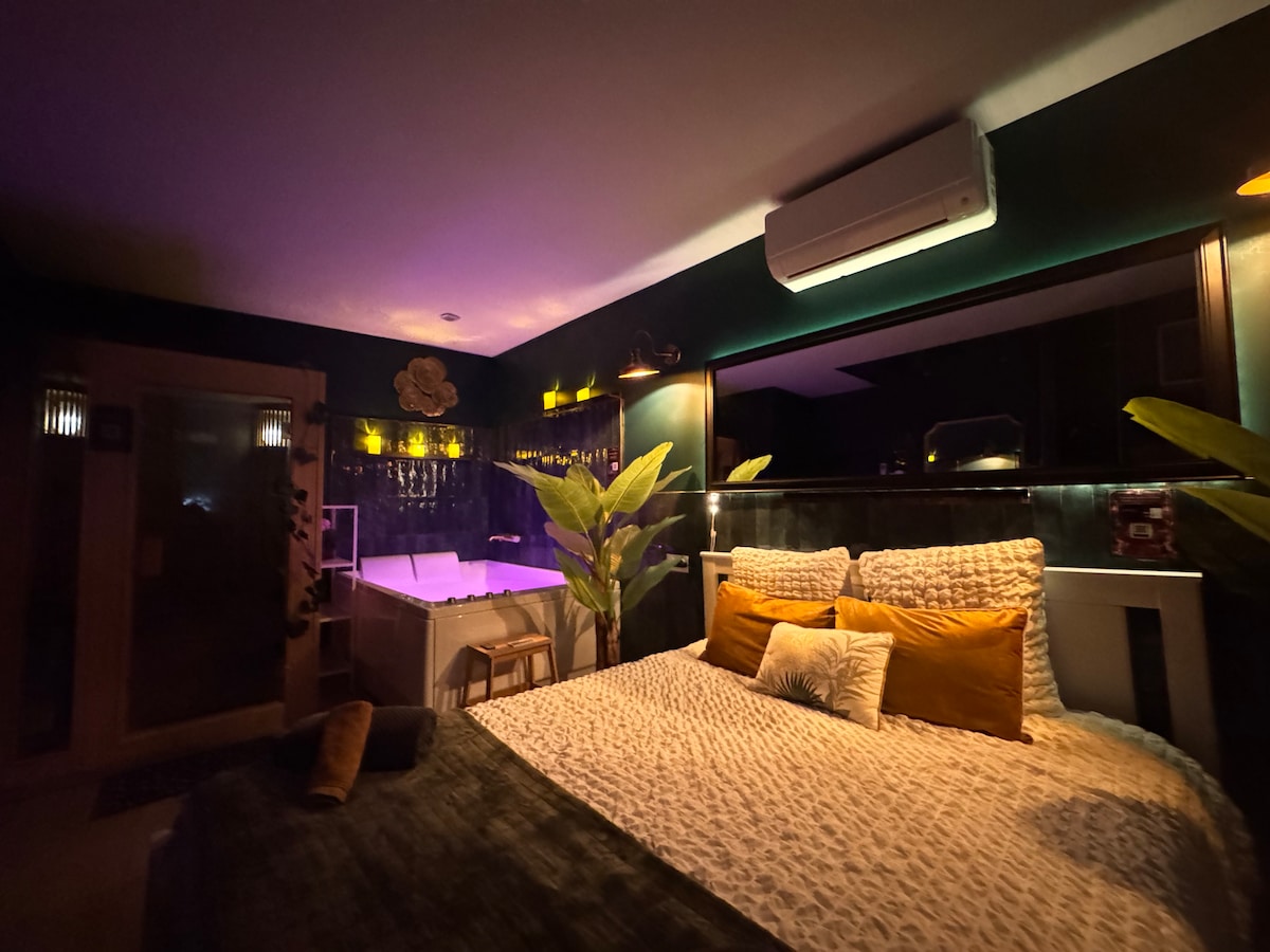 Relaxation stopover with private jacuzzi & sauna.