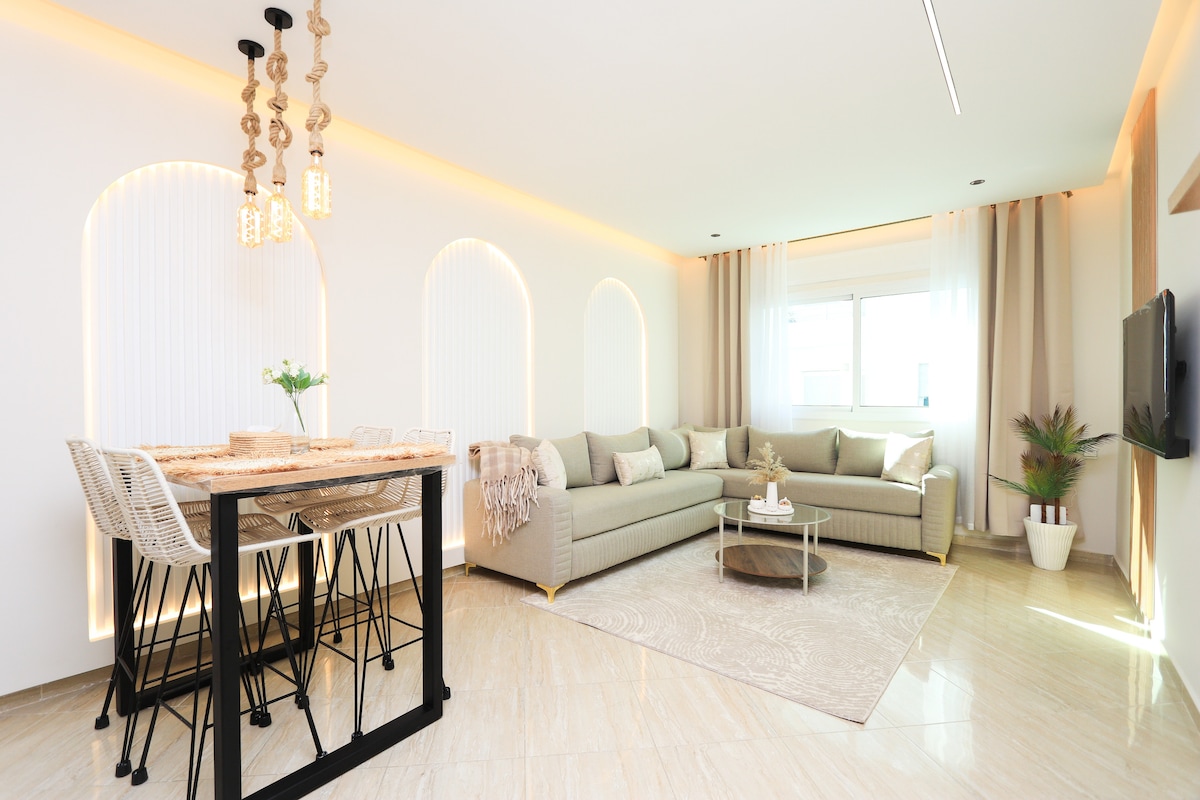 ✨The Panoramic apartment in Les Jardins Bleus is characterised by its modern and elegant design, each element carefully designed to guarantee you an unparalleled experience Central ✨location ✅ Apartment with panoramic sea views and close to: ✅ 1 min from Martil Beach 🏖 and its famous Corniche ✅ 5 minutes from Cabo Negro Beach 🏝 ✅ 4 min from Ikea and KFC 🍗 ✅ 6 min from Marjane and McDonald's 🍟 ✅ 1 min to restaurants, cafes, shops