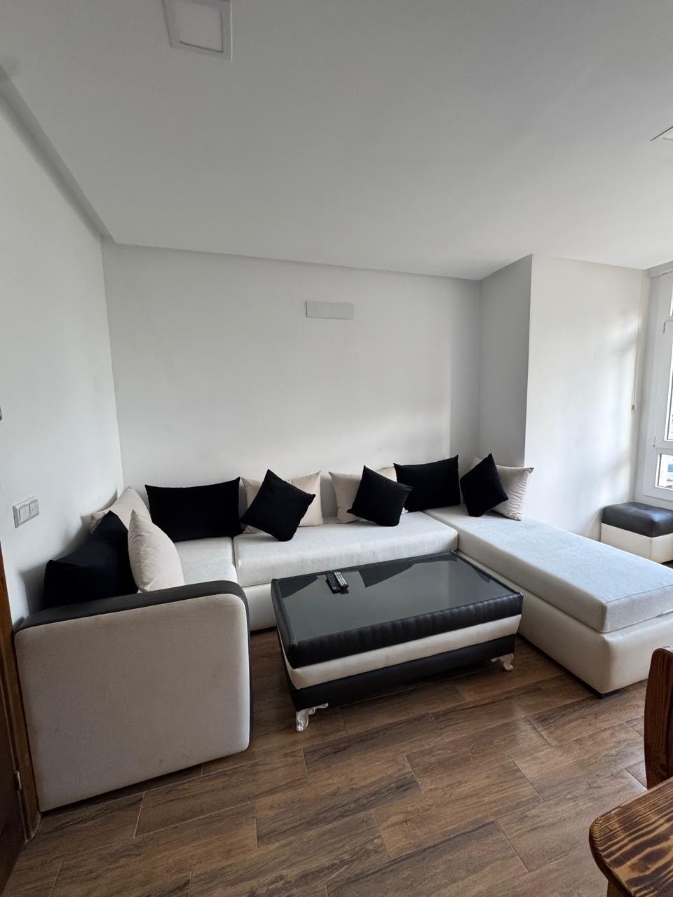 New and never inhabited apartment in Martil, just 10 minutes from the beach. Located in a recent and secure building with security cameras, this apartment is composed of a bedroom with balcony, a children's room with two beds, a Moroccan living room equipped with a smart TV, a well-equipped kitchen and a shower. Enjoy the comfort and modernity of this new layout.