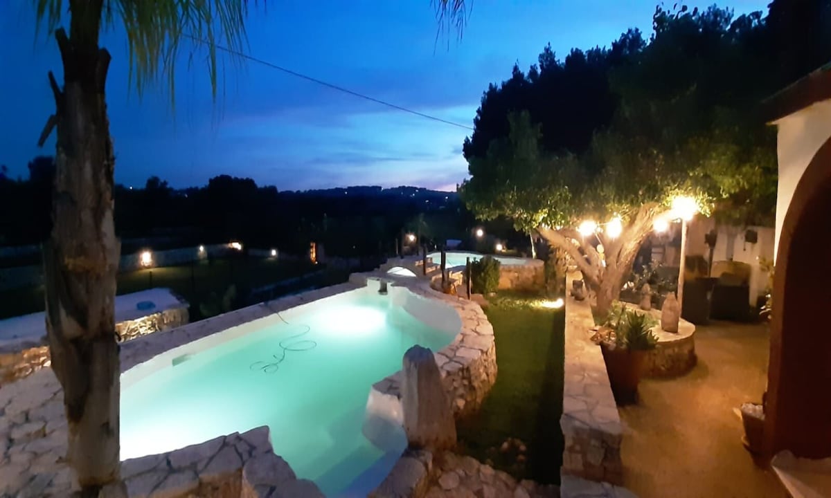 The Trullo Apulia is an exclusive property, made by recovering an original ancient historic domed house (called "Trullo Saraceno"), enriched by swimming pool, Jacuzzi and steam room for private use, in a scenic location, just 2 km from Ostuni and 10 km from the beautiful beaches of Puglia. It can accommodate up to 8 people. Note: the reservation fee does not include consumptions of electricity (0.50€/kWh), gas (5€/m3) and the tourist tax (1€/day for each person for the first 5 days) that will be calculated and paid at the end of your stay. Struttura esclusiva con piscina, idromassaggio, bagno turco, 8 posti letto, posizione panoramica, a 2 km da Ostuni e 10 km dal mare. Nota: i costi di consumi elettrici, gas e tassa di soggiorno non sono inclusi nella fee di affitto e dovranno essere calcolati e pagati alla fine del soggiorno. Italian Version Il Trullo Saraceno Apulia è una struttura esclusiva con piscina ad uso privato, in posizione collinare panoramica, a soli 2 km da Ostuni e 10 km dalle splendide spiagge pugliesi. Dispone di 2/3 Camere da letto matrimoniali, 4 bagni (di cui uno con bagno turco, vasca idromassaggio e doccia emozionale), 2 zone living (con 2 divani letto matrimoniali), 2 cucine, 2 camini e può comodamente ospitare fino a 8 posti letto. Atmosfera unica che unisce l’inconfondibile stile mediterraneo ai comfort più moderni, per un soggiorno esclusivo ed originale, all’insegna di relax, privacy e benessere naturale. La struttura è costituita da 2 unità abitative (trullo saraceno con 3 coni + lamia) totalmente indipendenti, ma comunicanti tra loro, separate da una porta con serratura. Ciascuna unità comprende una sala da pranzo con camino, TV a led satellitare e divano-letto matrimoniale, un cucinino completo di elettrodomestici (frigo-freezer, forno elettrico, lavastoviglie, lavatrice, piccoli elettrodomestici)e una camera da letto con bagno privato, completo di doccia emozionale per cromoterapia. Ideale per 2 famiglie di amici che, fatta salva la privacy, possono godere di momenti comuni di relax e divertimento, può anche essere utilizzata come unica unità abitativa, utilizzando una delle due zone living come terza camera da letto matrimoniale. Tutti gli ambienti della casa sono climatizzati e dispongono di connessione internet WiFi. Gli ospiti hanno a disposizione un parcheggio privato. L’intera struttura ha una capacità ricettiva massima di 8 posti letto, mettendo a disposizione dei suoi ospiti ben 4 bagni, di cui 2 interni completi, un’area benessere con bagno turco, aromaterapia, ampia vasca idromassaggio (che si affaccia su una suggestiva parete rocciosa), doccia emozionale con cromoterapia e servizi igienici ed 1 bagno esterno (water+lavandino) con doccia. L’esclusiva piscina a sfioro di acqua salata con idromassaggio è immersa nel verde della macchia mediterranea. Questa oasi di privacy e di relax dispone di tutto il necessario, inclusa una Zona solarium, la doccia esterna ed il bagno di pertinenza. La profondità dell’acqua della piscina risponde ai requisiti di legge per garantire la massima sicurezza anche dei più piccoli. Molteplici sono gli spazi esterni arredati e le ambientazioni minimal chic che consentono agli ospiti di pranzare o cenare su un ampia terrazza panoramica ombreggiata da un gazebo cannucciato o di gustare, appena svegli, una ricca prima colazione all’aperto, in un’area attrezzata proprio davanti alla portafinestra della propria camera da letto, respirando i profumi dei campi, nell’intimità della luce del primo mattino. Al tramonto, l’unicità del trullo e del giardino circostante, vengono ancor più esaltati dall’illuminazione serale, che vi regalerà nuove emozioni ed un fascino indimenticabile, rallegrati dai sapori inconfondibili dei cibi grigliati al barbecue. Il complesso abitativo è frutto di una recentissima ristrutturazione di costruzioni dal valore storico (il Trullo Saraceno dalla caratteristica cupola bianca è ancora più antico del trullo a cono), in cui il sapiente recupero dei materiali, delle tecniche e dei canoni tipici dell’architettura e della storia pugliese, hanno consentito un restauro di interni ed esterni che mantenesse una linea fortemente evocativa e rispettosa dei luoghi, anche nell’arredamento dai colori chiari e naturali, studiati con la massima attenzione ai dettagli e costituito da pezzi unici e originali. Il fascino della location non conosce paragoni: la costruzione si affaccia su un giardino terrazzato caratterizzato dai tipici muretti a secco, oltre i quali si apre, a perdita d’occhio, su un’area di circa 6.000 mq di pertinenza esclusiva della casa, una valle di magnifici ulivi secolari su terra rossa. Un agrumeto, un frutteto, ampie aree di macchia mediterranea tra le quali trovano spazio molte piante ed erbe aromatiche, dischiudono immagini, in un tripudio di colori e profumi di natura incontaminata che illuminano gli occhi ed allietano la mente. l frutti e gli ortaggi tipici pugliesi, totalmente biologici, sono a disposizione degli ospiti. NOTA: Trullo Apulia promuove un uso sostenibile dell'energia elettrica e dell'acqua (presenti pannelli fotovoltaici e per riscaldare l'acqua sanitaria) e ci piacerebbe che anche i nostri ospiti facessero lo stesso. Per questo motivo non includiamo i consumi elettrici in maniera forfettaria nelle spese di affitto ma saranno conteggiati secondo il consumo effettivo che verificheremo insieme, confidando in un vostro uso responsabile (per il dettaglio, vedi la sezione "Altre cose da considerare"). English Version The Trullo Saraceno Apulia is an exclusive property with swimming pool for private use, in a scenic hillside location, just 2 km from Ostuni and 10 km from the beautiful beaches of Puglia. It has 2/3 Double bedrooms, 4 bathrooms (one with a steam room, whirlpool bath and emotional shower), 2 living areas (with 2 sofas bed for 4 people), 2 kitchens, 2 fireplaces. The whole structure can comfortably accommodate up to 8