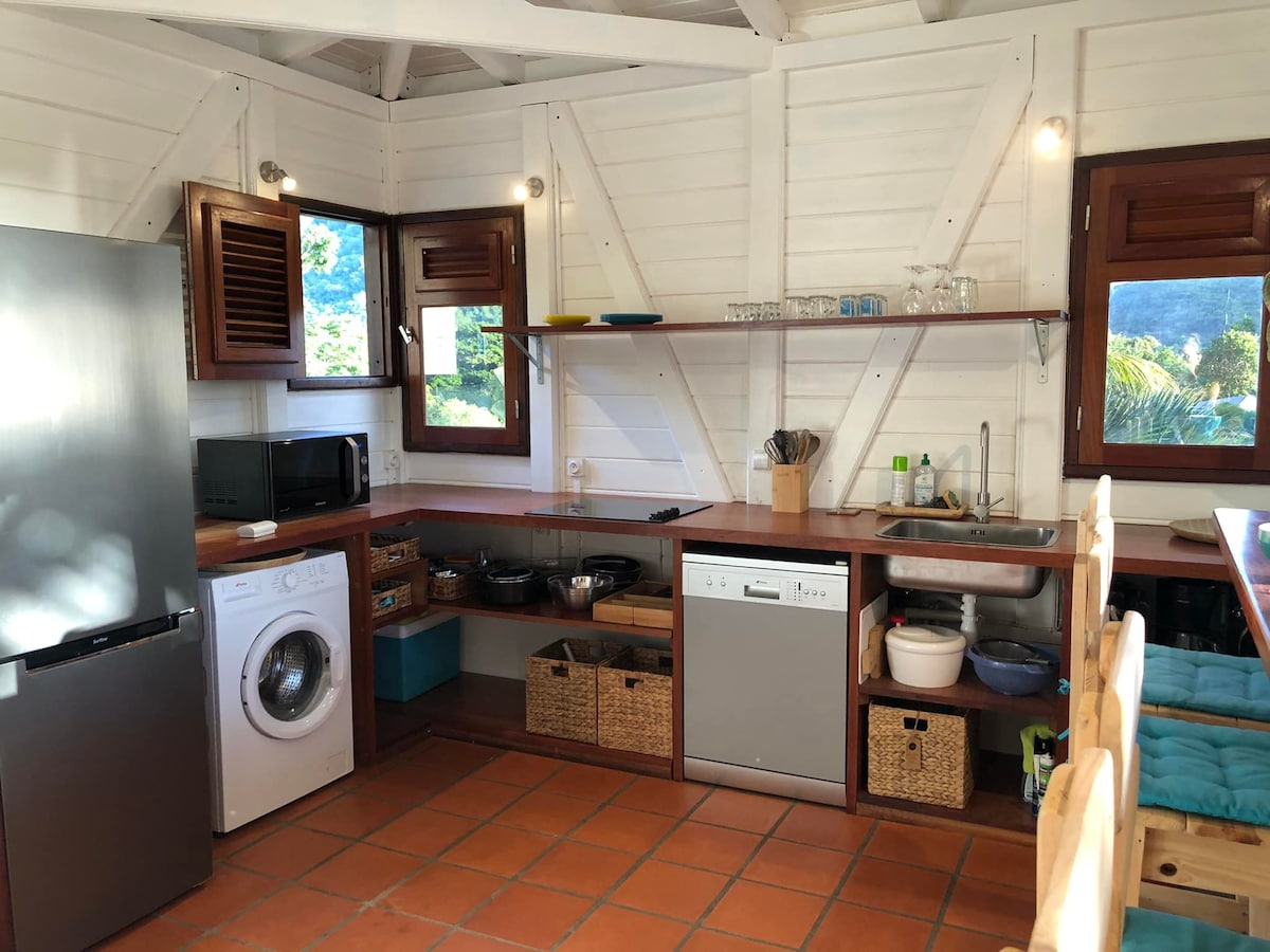 A wooden house in the city of Trois Ilets (Martinique) with all modern commodities (air conditioning, washing machine,, Wi-Fi, etc), a beautiful view of the Caribbean Sea and its amazing sunset. With an access to the beach (3min walk) and to the boat