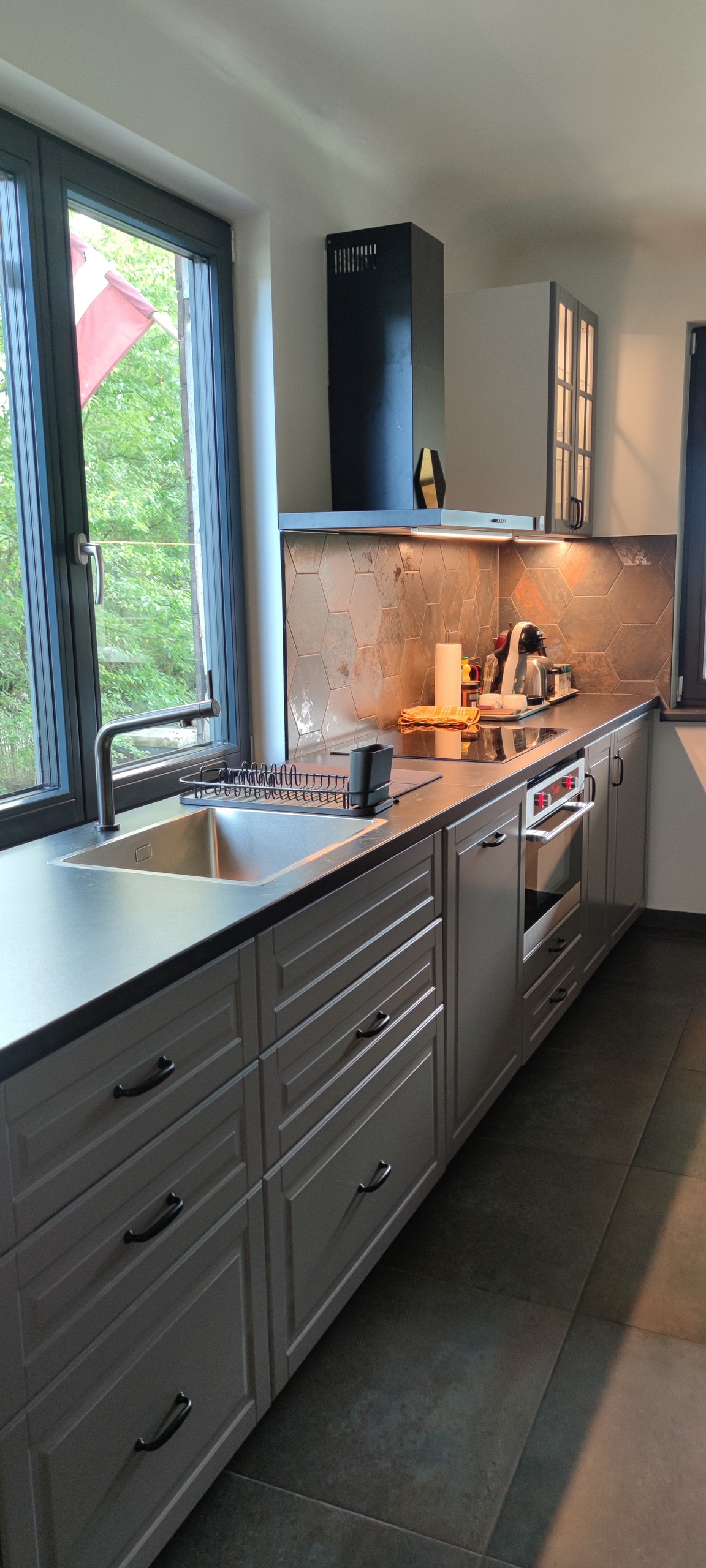 A design-lover’s retreat near Riga. This stylish cabin is next to our plant nursery, with a cozy café just steps away. Surrounded by trees and flowers, it’s the perfect place to disappear for a while. We have robes, slippers, toothbrushes, towels, hair dryer, hair straightener, shampoo, conditioner! Also a free bottle of water, spices, coffee, tea, olive oil, hot chocolate etc! wood-fired hot tub, 60€/per booking (request latest 1 day in advance) For more info: oranzerija.kabriolets