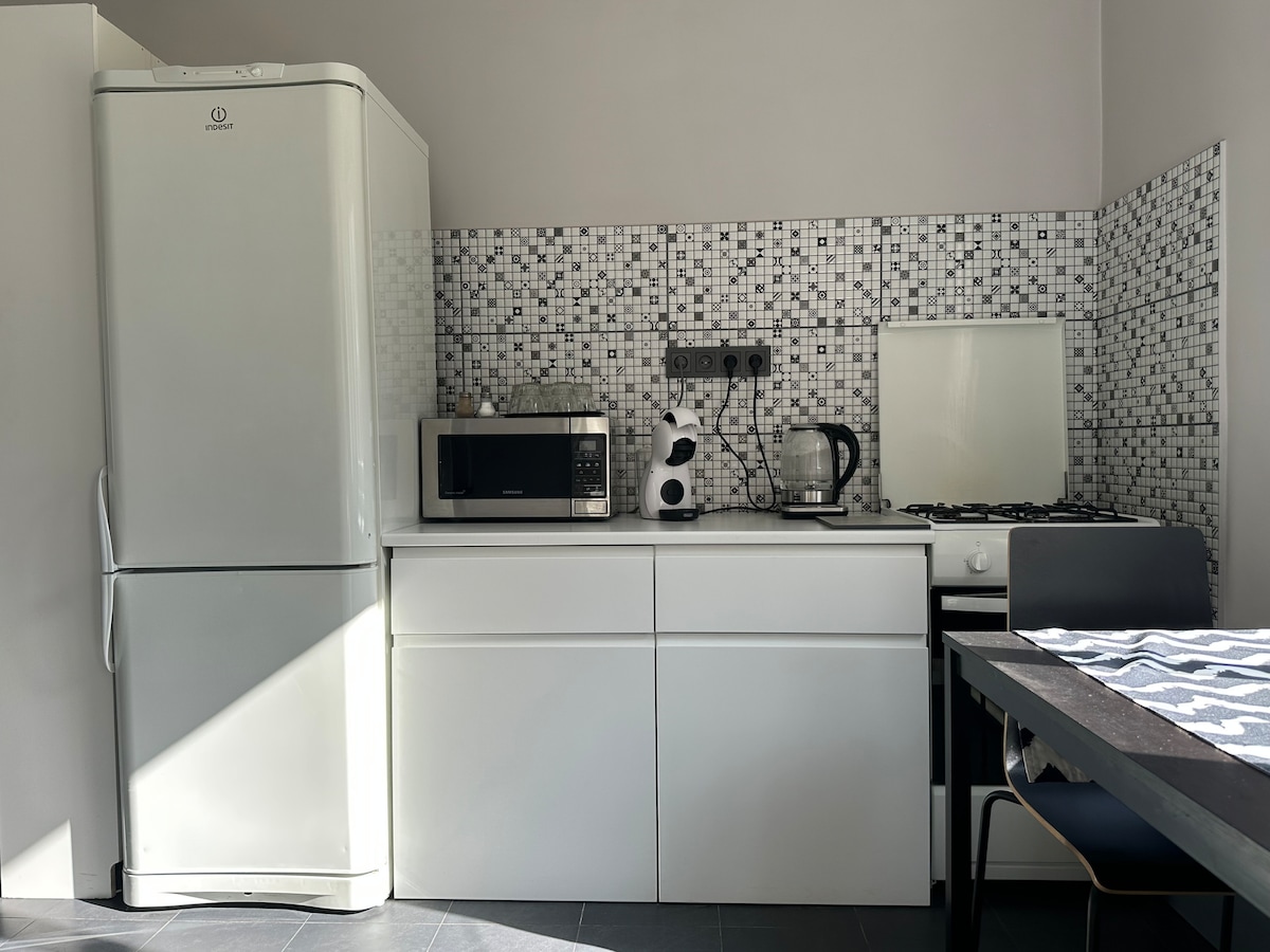 Enjoy hassle-free beach days with our convenient free parking on the site and just 3 walking minutes away from the beach! Sauna house (separate building on the territory) for an additional fee. The apartment is situated in Jurmala within the free-entry zone, with free parking available on the premises. Our cozy apartment is located on the ground floor of a private house, boasting a separate entrance. It's an ideal retreat for two people, but can comfortably accommodate up to four guests.
