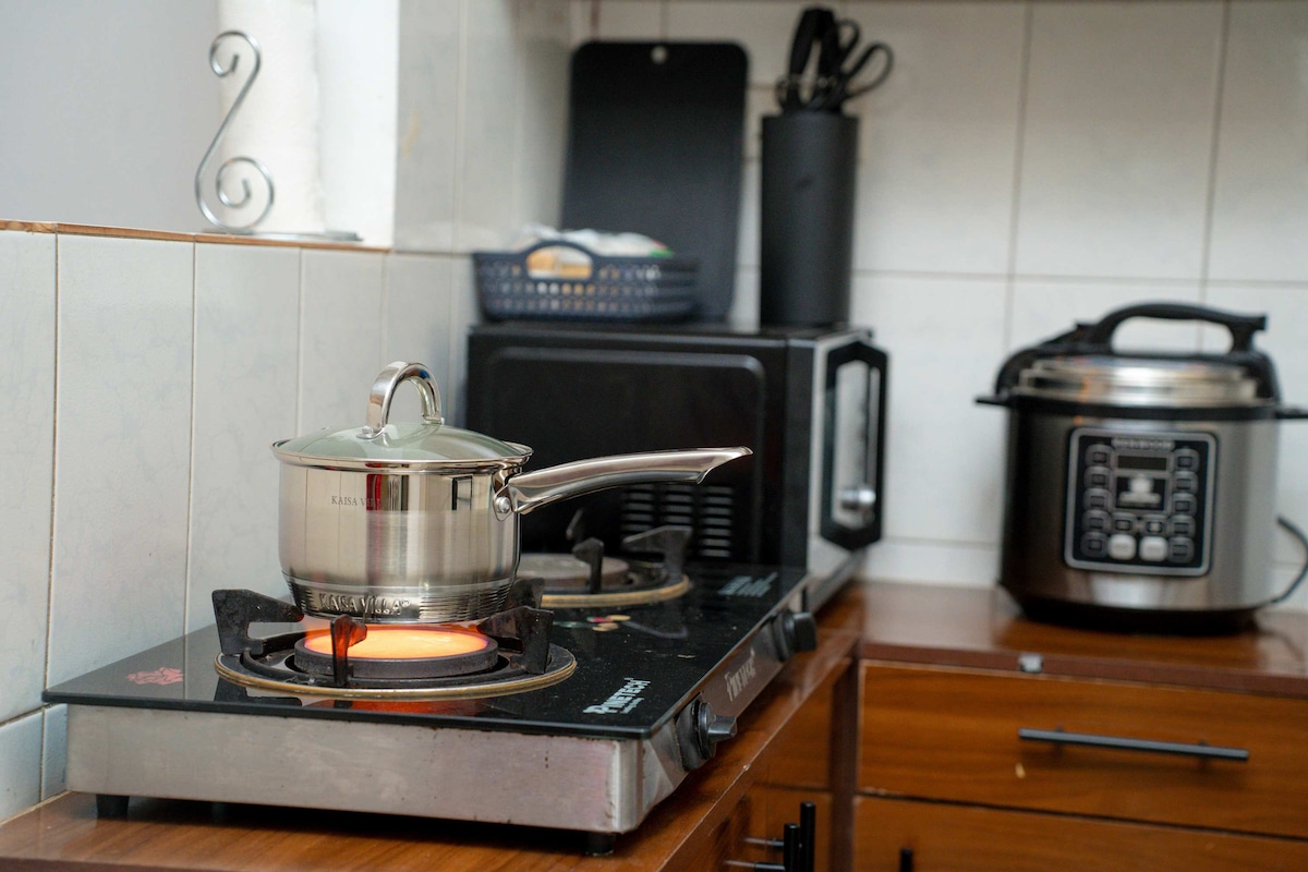 Welcome to The Modern Nest, where comfort meets convenience. Enjoy fast, reliable WiFi, a calm, quiet & secure neighbourhood, and a dedicated workspace perfect for productivity. Start your day with complimentary essentials including bread, eggs, milk, fruits & water, and enjoy cooking with a fully equipped kitchen. With cozy bedding, modern design, and a relaxing atmosphere, The Modern Nest is perfect for both work and relaxation.