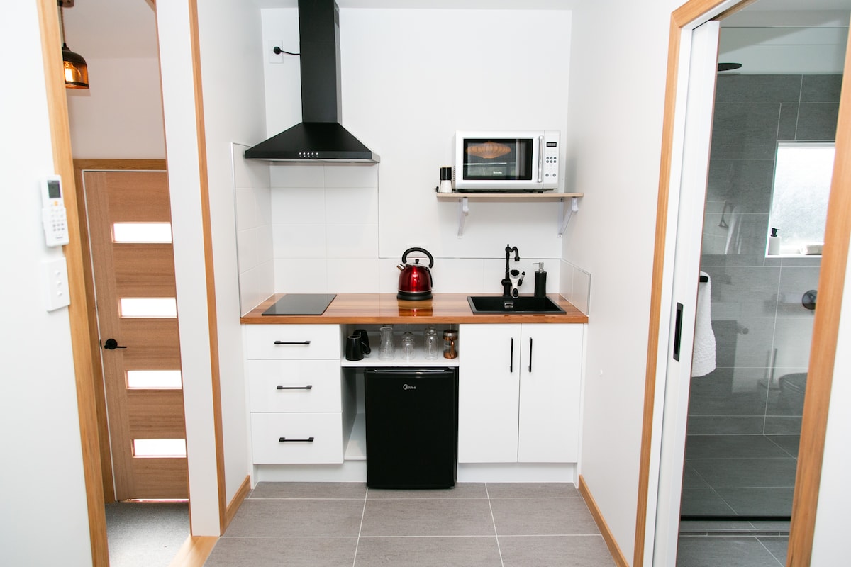Modern studio conversion. Private en-suite bathroom and kitchenette. Private Patio area. Perfect space to relax. Free off street parking. Separate from main house with own entrance. This is your own space and a great base from which to explore Christchurch. * 5 mins - Airport * 15 mins - Central City * Basic Breakfast included * Nespresso Coffee * Air Conditioning/ Heat Pump * TV with Netflix * Fast Wifi * 24 hour Lockbox * Multi-night discounts * Pet Friendly * Ecostore bathroom products
