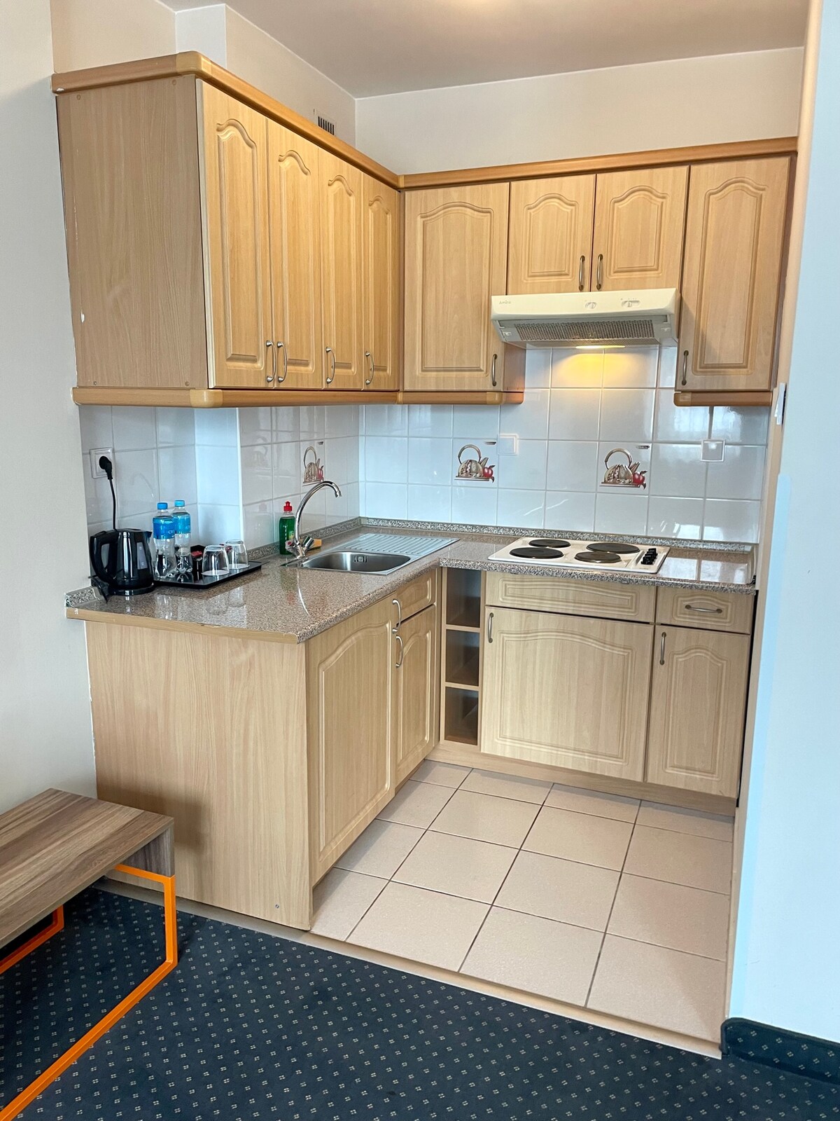 The deluxe King with an area of 50m² consists of one King-sized bed, one sofa bed and one bedsette by the TV, a desk with a inbuild mini-fridge and a kettle. The room has an attached spacious private bathroom with a shower. dear guest, this room is unfortunately not suitable for pets Regards, Nicole