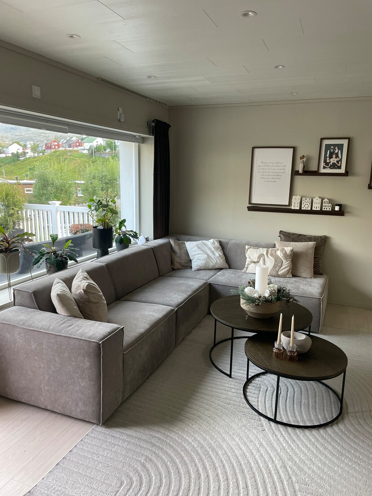 The apartment, built in summer 23, is modern with a fully equipped kitchen, a living room featuring a sofa area and TV, a cozy bathroom with a shower, a hallway, and a bedroom with a custom-built 150 cm bed. All rooms offer views of Hammerfest harbor area, Melkøya, and Håja. It's located on a side street, just a 5-minute walk from the city center. Unfortunately we don't have parking outside our house because the street is so narrow.