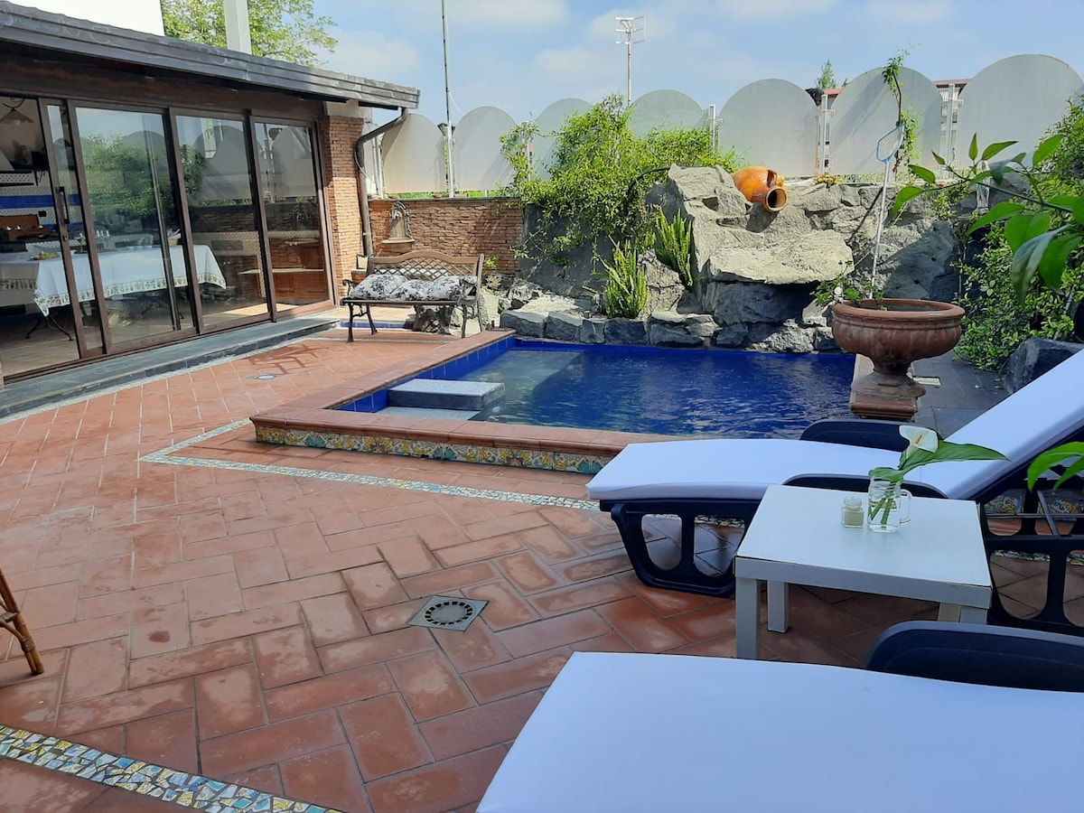 Rilassati in this quiet and elegant oasis, immersed in the National Park of Vesuvius surrounded by a splendid olive tree. The allotment is an independent vesuviana town, with lake view, of 30 mq2 and has: - a matrimonial letto; - a splendid eastern patio, - cooked attrezzata di tutto; - sofa, pranzo set and smart TV 32; - a bath with large shower facilities; - eastern patio; -condivided swimming pool and video streaming; - parcheggio chiuso e privato.
