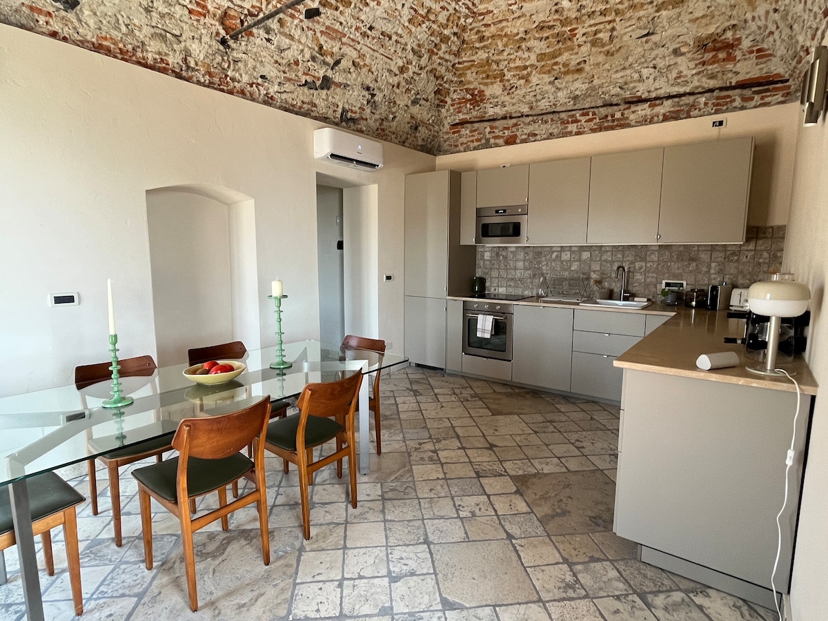 In the heart of La Morra, in a building of the '700 recently restored, with characteristic wooden beamed ceilings, the accommodation is organized on two floors. Combined in rustic style with modern furnishings, it includes a kitchen; large living area with a table for 8 people, a sofa bed; living room with TV and sofas on the upper level. Three bedrooms with queen beds, plus a baby bed. The apartment is completed by three full bathrooms with shower and access to the balconies.
