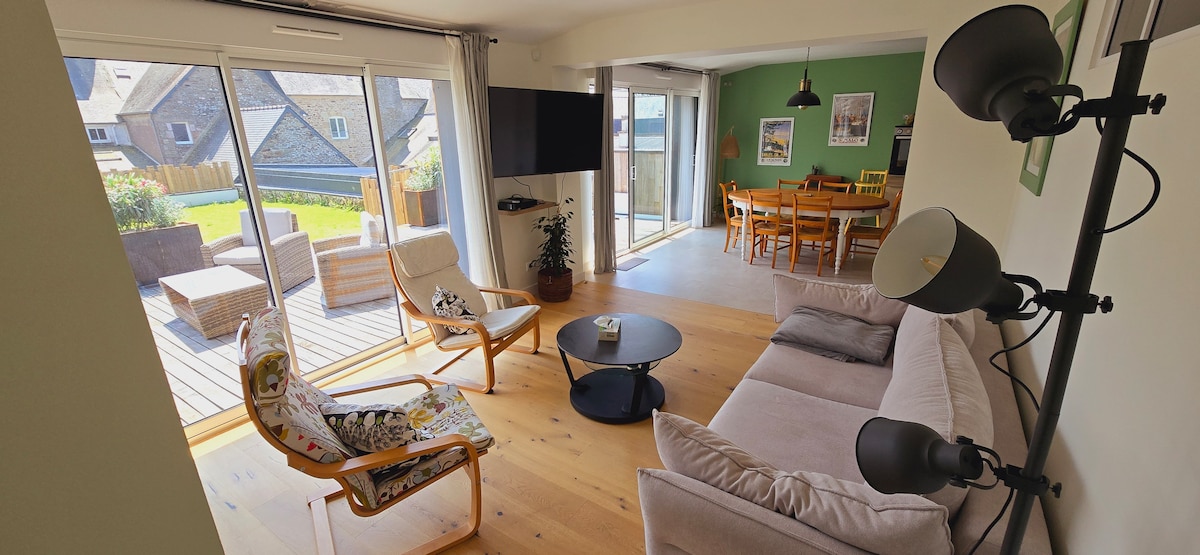 Profitez d'un logement élégant et central. En plein cœur du bourg de Matignon et de ces nombreux commerces, venez découvrir cette charmante maison en étage. Idealement situé pour les marcheurs et les cyclistes. A 15min en vélo des plages de Saint-cast. Vous pouvez également retrouver les sentier côtier et la belle vallée du moulin de la mer au départ de la maison. A seulement 20min du Cap Fréhel et 1h10 du Mont Saint-Michel.