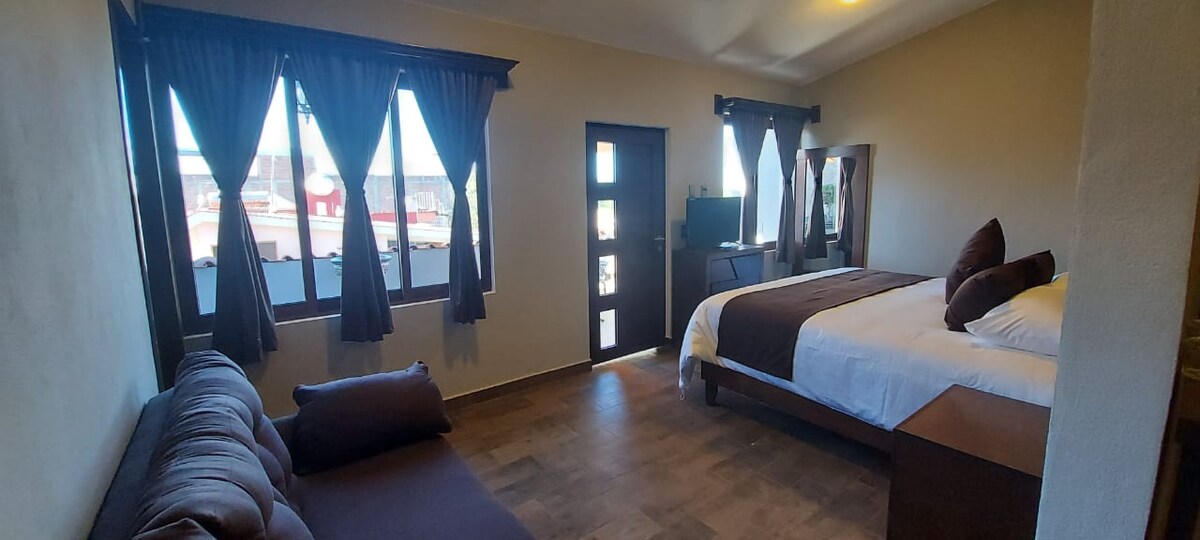Enjoy Mazamitla's beauty with the comfort you deserve in our beautiful and spacious Suites, Suite #8 has a capacity of 2 guests, one with a king-size bed, kitchen, dining room, fireplace, sofa bed, hot water 24 hours a day, private parking and the best care.