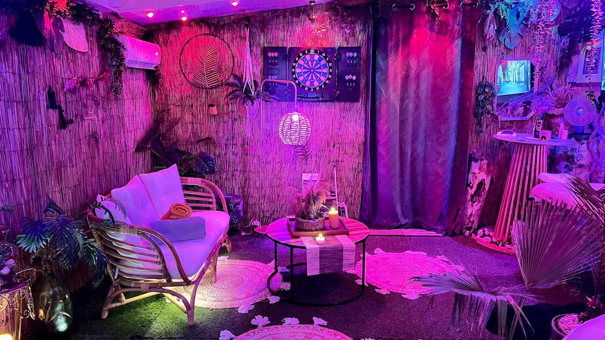 ✨ Discover the Mirage Tropical , a refined parenthesis on the banks of the Loire 🌴. Enjoy a Spa, Massage Table, an elegant terrace and an exotic jungle area to escape to. Have fun around the game of darts, share an exotic aperitif, or relax in a unique atmosphere. In the evening, the room lights up with mesmerizing colors for a chic and romantic moment💖. Here, every detail sublimates your stay to create memorable memories.🌴❤️❤️💕💕💕👄🫂❤️