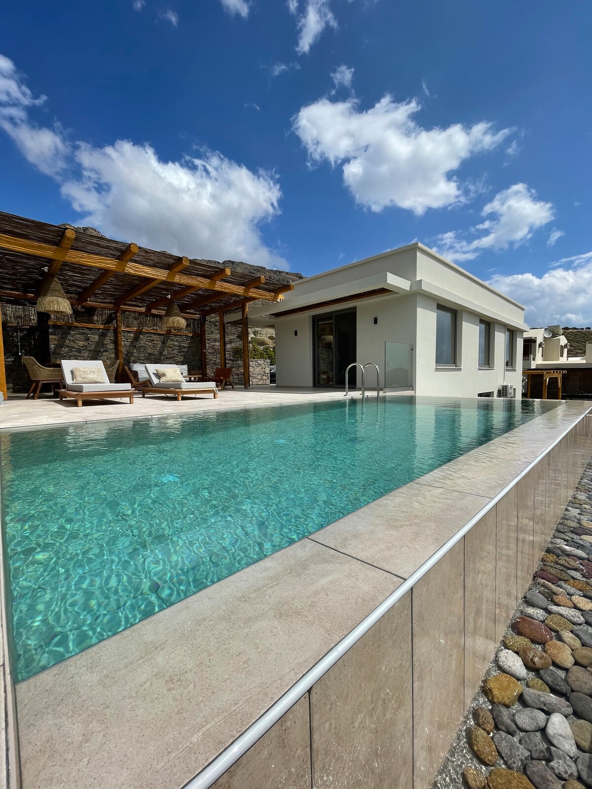 Απολαύστε γαλήνιες διακοπές στη θάλασσα! Ξυπνήστε το πρωί βλέποντας από το κρεβάτι σας μια μοναδική ανατολή ηλίου. Χαλαρώστε στο υπαίθριο τζακούζι, στην κοινόχρηστη πισίνα, τις βεράντες, ακούγοντας τον ήχο των κυμάτων και το κελάηδισμα των πουλιών. Η θέα παντού είναι εξαίσια. Μπροστά σας το απέραντο γαλάζιο του Κρητικού Πελάγους, γύρω σας η εντυπωσιακή κρητική φύση. Από τα δύο σαλόνια ως τις κρεβατοκάμαρες, την τραπεζαρία, την κουζίνα, τα μπάνια, το υπαίθριο ντους, η θέα είναι συναρπαστική.