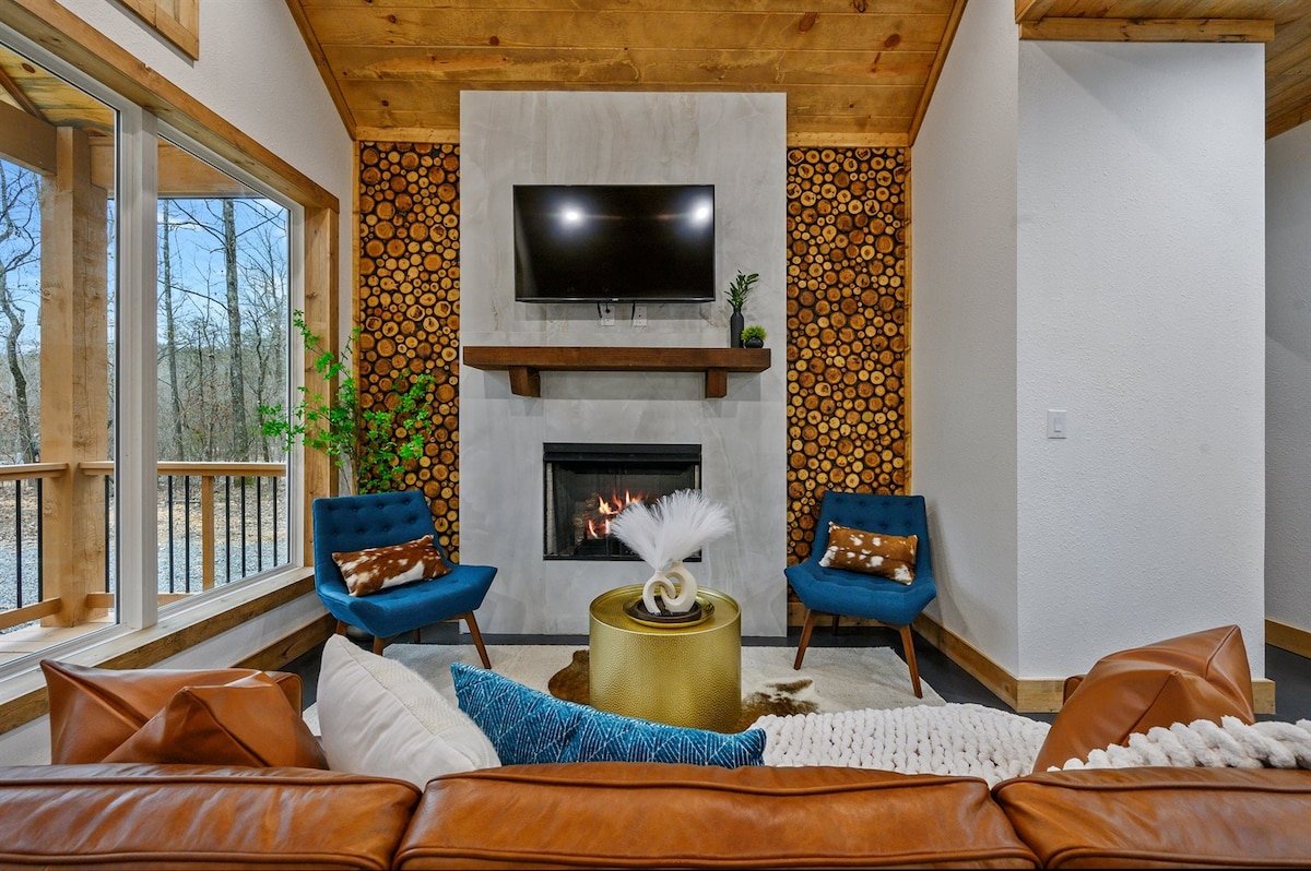 Champagne Nights was crafted with a level of craftsmanship unmatched by others. From its high-end finishes throughout to the state-of-the-art kitchen, the attention to detail and interior design has been curated to deliver the highest level of luxury. The outdoor space offers a built-in gas grill, patio with SmartTV, Jacuzzi, and two fire pits. Enjoy a seasonal creek just steps away, offering sounds of peacefulness, all surrounded by towering pines. This property has a strict, no pet policy.
