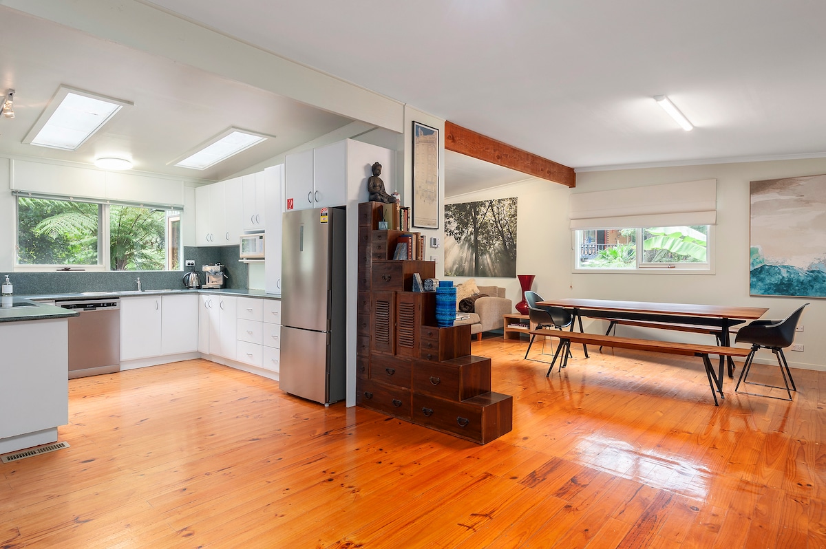 With breathtaking views overlooking Mount Victoria, this 1950s home has been lovingly restored and modernised into an open plan, bright space. Only a few minutes walk to the Main Street of Warburton, you can stroll into town or just sit on the large deck and listen to the many birds in the surrounding trees. An open kitchen with German appliances, a wood heater for cozy nights and a king bed for watching the many cloud formations that drift by makes this getaway so memorable.
