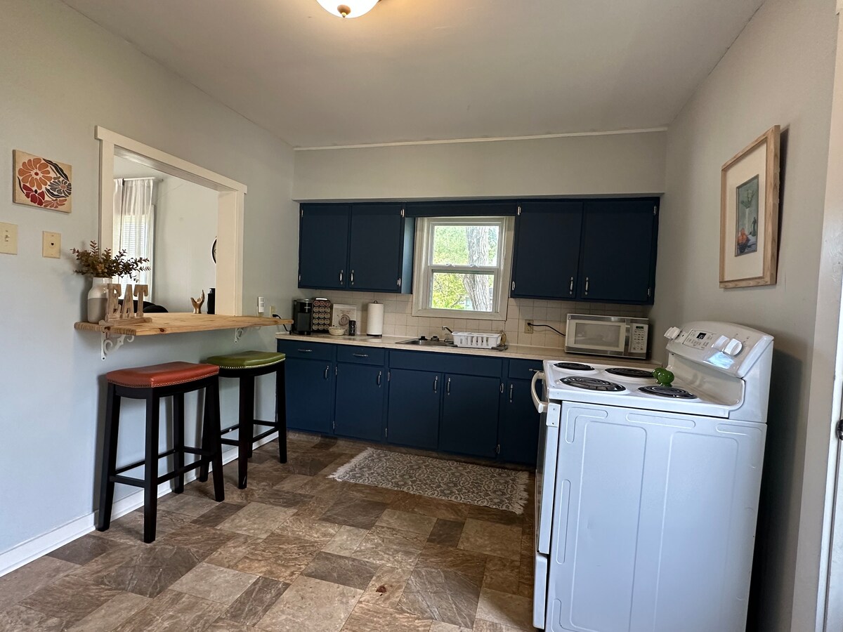 Enjoy the modern conveniences in this remodeled 1930's bungalow! You will love this gorgeous new kitchen with all appliances, quartz countertops, center island eating bar, and all of the amenities needed for your stay. The cozy living area has a small recliner and comfortable couch. Relax in the bedroom on the queen size bed with walk-in closet. The bathroom features a spacious Onyx walk-in shower. The loft has two, twin size beds, but is only accessible with a ladder (age 5+ only).