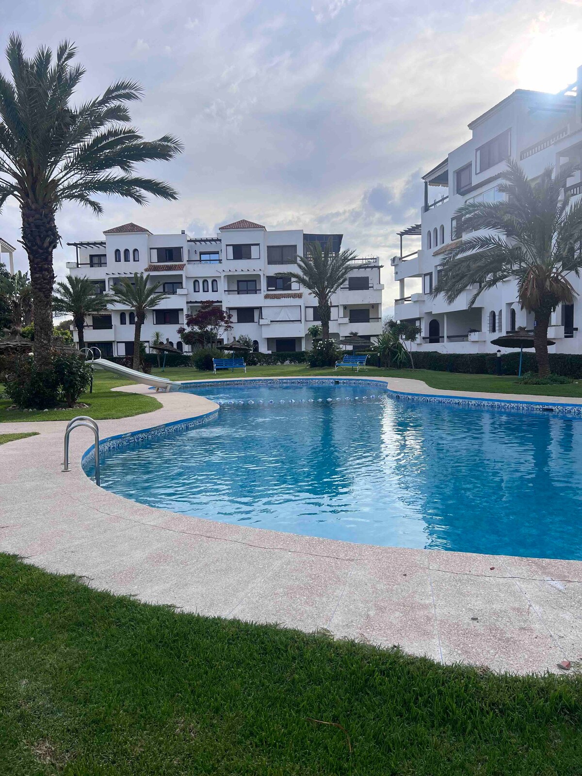 Amazing 3 bed apartment with all mod cons fully furnished with access to 7 great pools, outside gym, children's playing area, private parking 24hr security fully secluded, free wifi, this apartment comes with stunning mountain views, walking distance to the beach, this apartment is located in the north of Morocco.