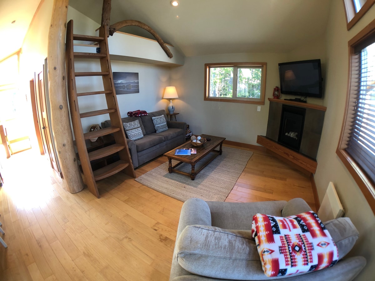Beautiful new modern luxury one bedroom cabin facing the rainforest in Jensen Bay . Kick back and relax in this custom built cabin in a fantastic area. This cabin is walking distance to beaches , both Cox bay and Chestermans and a short drive into town. Beach cafes and restaurants This space is ideal for a couple or small famly looking for a home base to explore Tofino We are a licensed registered rental, in complete compliance with the District and new provincial STR laws