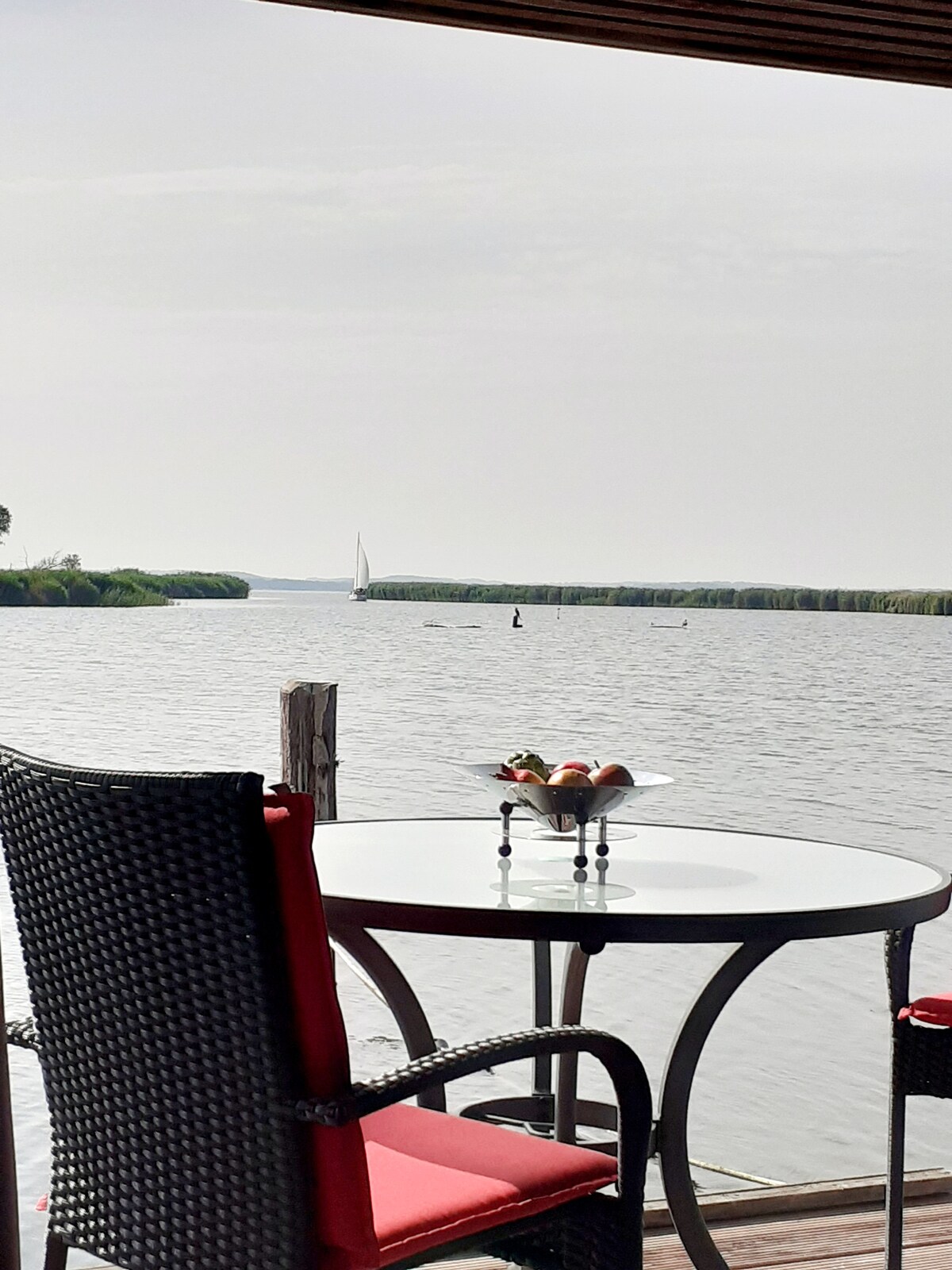 The paradisiacal houseboat La Péniche is moored at the jetty of the natural harbor Rieth at the very outer berth. We have designed the boat so that you have incredible views of the sea from all large windows and terraces and experience fairytale sunsets on the lagoon. You will love the design of the decor. After a walk in your boat sauna, cooling off in the lagoon and with a glass of wine on the sun deck, you will not want to leave the boat.