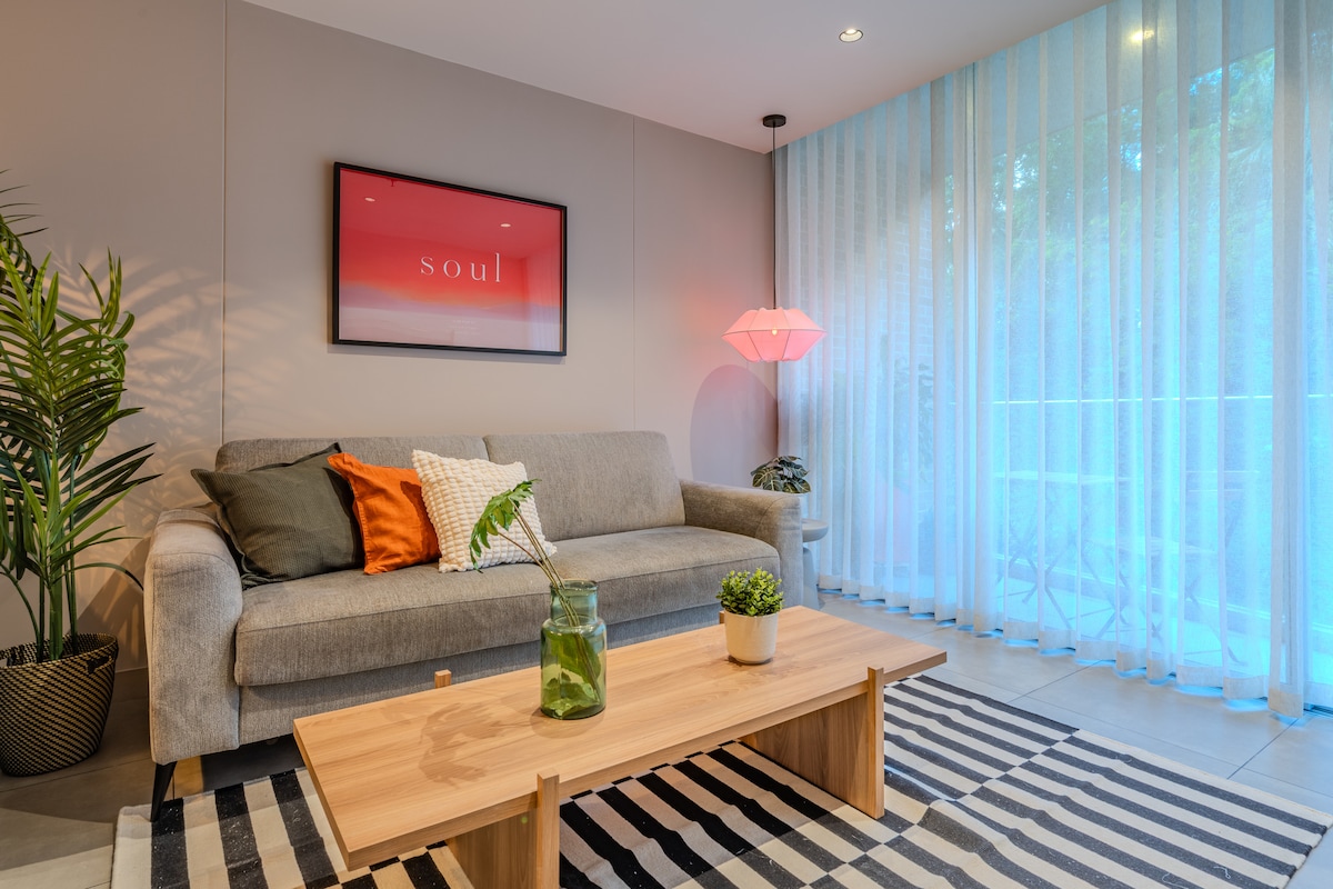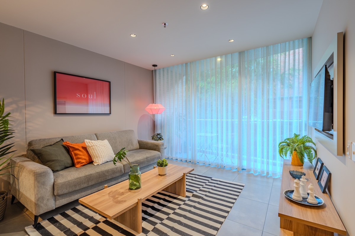 Luxury 70m² loft on the 9th floor of the iconic Energy Living. Open our floor-to-ceiling windows to transform your entire living space into an airy, open-air retreat with Medellin’s best skyline views. Features a King-size bed, two 80" TVs, and a sleek modern design. Enjoy a rooftop infinity pool, gym, and jacuzzi on the 22nd floor. Located 5 mins from Provenza and El Tesoro. Secure, quiet, and perfectly connected.
