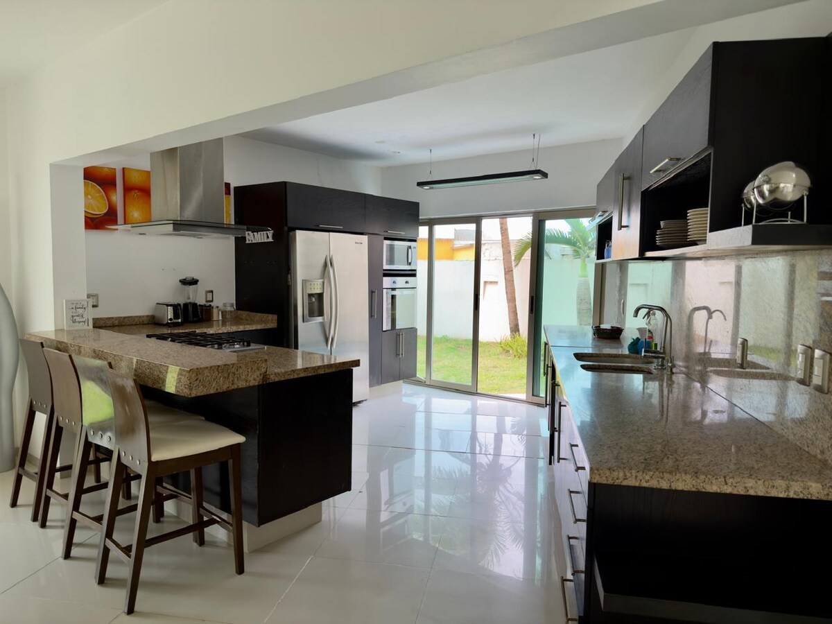 Family getaway, pet-friendly, with a private garden and pool. Beach is just 200 steps away. 3 bedrooms, 2.5 bathrooms and kitchen with spacious living room, ready for you to enjoy with your loved ones. Beach club, and Oxxo convenience store within the complex. 10 minutes from Plaza El Dorado and 20 minutes from Boca del Río. Perfect for relaxing and enjoying quality time with your family. Privacy, comfort, and unforgettable memories with your pets in a family-friendly and safe environment.