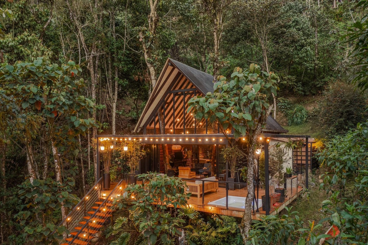 Located in a forest near Medellín, this cabin for couples is perfect for a romantic getaway. It has a fully equipped kitchen, a cozy room, and a bathroom with all the amenities. Best of all, the impressive outdoor Jacuzzi overlooks the forest. Enjoy the privacy and tranquility of nature. This cabin is the perfect place to disconnect from the city and enjoy the tranquility of nature