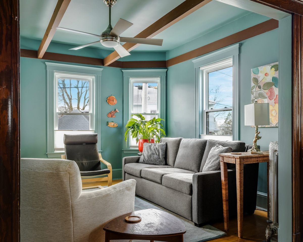 Located 3 blocks from the Medford/Tufts stop on the MBTA Green Line, this beautifully renovated, professionally cleaned, sunny 1st floor Victorian (the outside porch has 8 steps), king and queen beds and an en-suite washer & dryer. Minutes to the T, Tufts and Davis Square with easy access to Harvard, MIT, downtown Boston, The Boston Garden, Fenway Park, and hospitals via public transit, apps, or car.