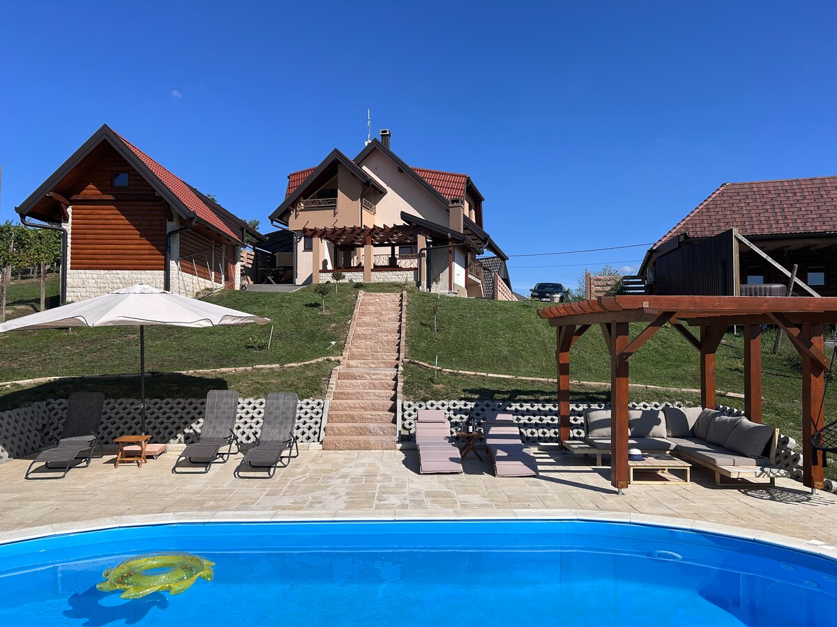 Villa Brallissima is a "Hand Made" villa with a heated outdoor pool and a unique stone barbecue where you can enjoy a phenomenal panoramic view of the beautiful hilly landscape of Međimurje where there is complete silence and peace...Hand-crafted stone and wood, hand-made furniture and details that give a unique soul to the whole building....spa part with a top Finnish sauna and elite massage tub...spend the evening with beautiful ambient outdoor lighting or with a night starry sky without light pollution