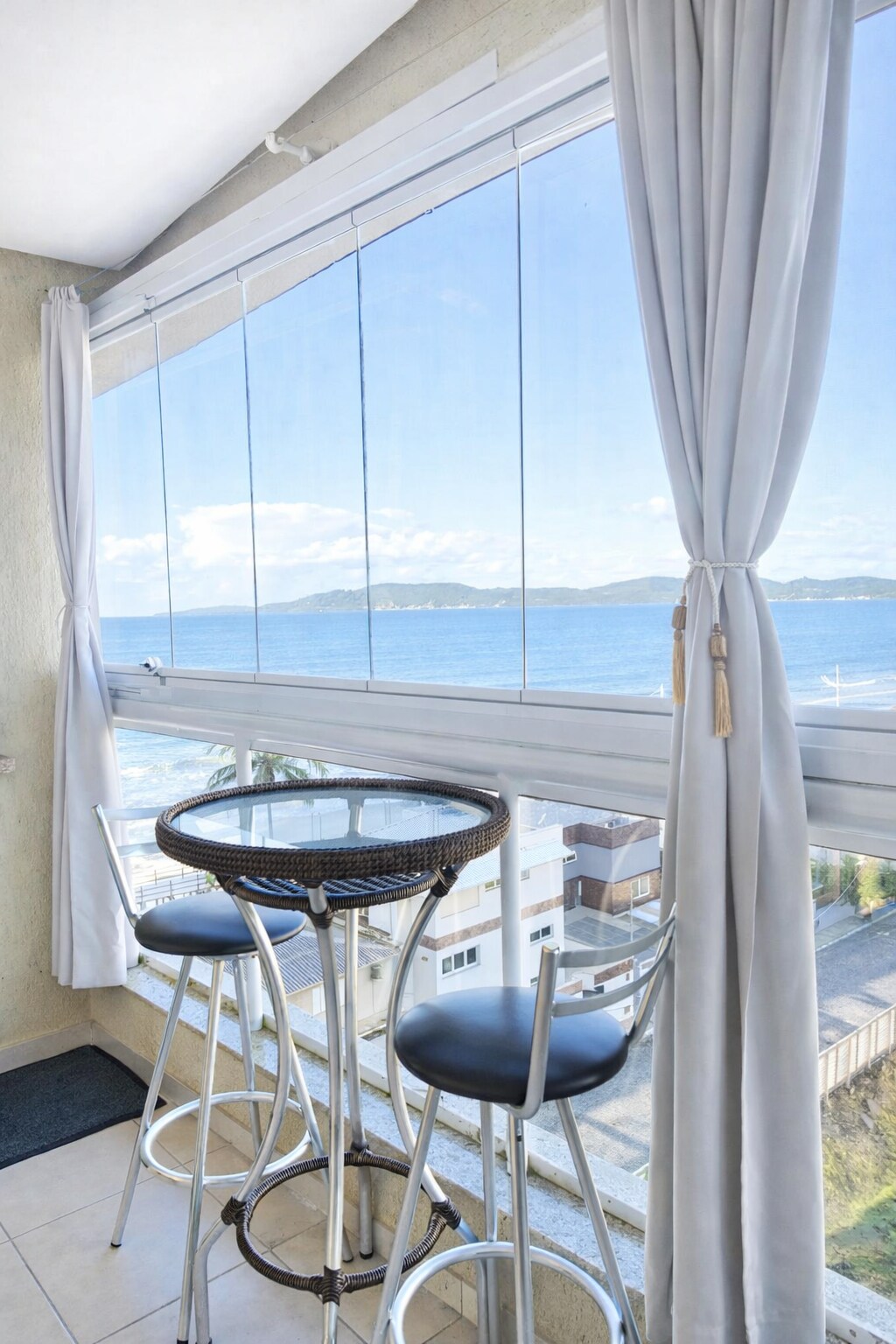 Finely furnished apartment in the best location of Meia Praia (Itapema), on the corner of Rua 255. A sophisticated seaside retreat, ideal for those who value comfort, elegance and practicality. • Oceanfront with a breathtaking view • Full kitchen with charcoal barbecue, grill, skewers and utensils • Wi-Fi Internet • 3 large en-suites with queen size beds • TV and air conditioning in all rooms • 1 private parking space in the building – measurement: 9m x 2.35m