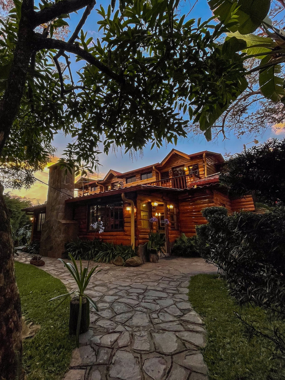 Private wooden cabin on the San Salvador volcano with luxury interiors and fresh mountain air. Surrounded by gardens and nature, it invites you to disconnect, enjoy the silence and lush green views. Features a fireplace, Wi-Fi and cozy bedrooms with TVs. Guests can request breakfast, lunch, and dinner from Pampa Argentina del Volcán Steakhouse to enjoy in the cabin or at a nearby restaurant. Ideal for families, couples, or groups seeking nature, a mountain atmosphere, and gastronomy.