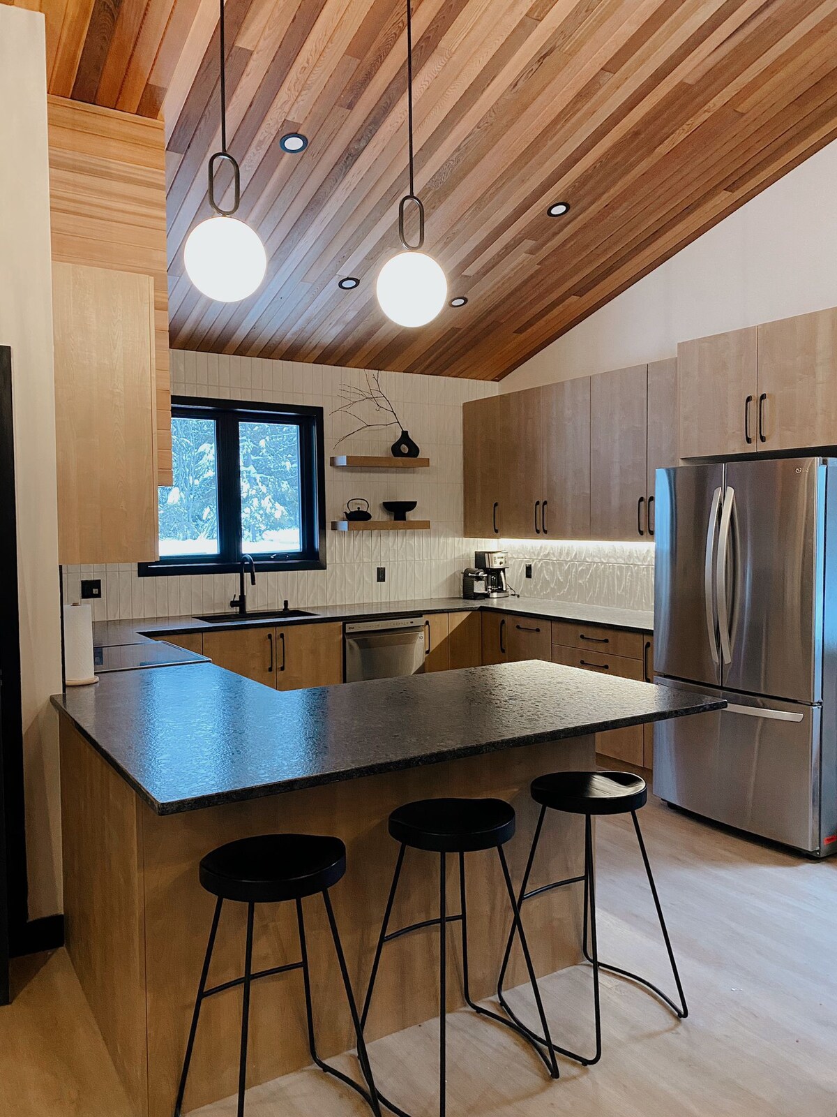 The "Chalet Plein Sud" gives you a breathtaking view of the lake Laurianne and surrounding mountains near Saint-Côme in the Lanaudière region. You will feel in the heart of nature with your feet warm thanks to radiant heating on the ground floor. Ceilings to 10 feet give the amplitude and lightness as the surrounding nature. The "Chalet Plein Sud", no compromise has been made to ensure a stay where comfort is combined with luxury items ranging from cedar siding to high-end appliances; a soothing and comfortable atmosphere in a clean environment. This house was completed in 2016. The chalet offers 4 bedrooms (can accommodante 8 adults for a maximum of 10 people), two full bathrooms, a laundry room, a large vestibule for storing winter clothes and a large open area including kitchen, dining room and living room. A BBQ is also available. You can practice many activities, for example: skating on the lake, snowshoeing, cross country skiing, downhill skiing in Val St-Come (15 minutes), ice climbing and rock at montagne Le Tranchant (15 minutes) snowmobile trails from the cottage, snow slide directly into the court or super slide of St-Jean-de-Matha (15 minutes). In summer, kayaking, stand up paddle boarding, fishing, climbing, cycling, hiking and mountain biking are practicing. After the activities, the spa for 5 people waiting for relaxation and massages! CITQ Establishment number : 291771