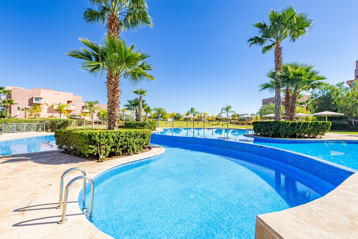 Discover Serenity at Marrakech Golf City Prestigia: A Luxurious Retreat Just 5 Min from Ménara Airport. This sought-after residence, close to the vibrant city center, offers easy access to iconic landmarks like Menara Gardens, Jemaa el-Fna Square, and Majorelle Garden. Enjoy breathtaking views of the Atlas Mountains, pristine golf courses, and a stunning pool from our elegant apartment. Experience peace and luxury in the heart of Marrakech. lease note: In adherence to Moroccan law, we are unable to accommodate unmarried Moroccan couples in our property. Enjoy tranquility and luxury in Marrakech.