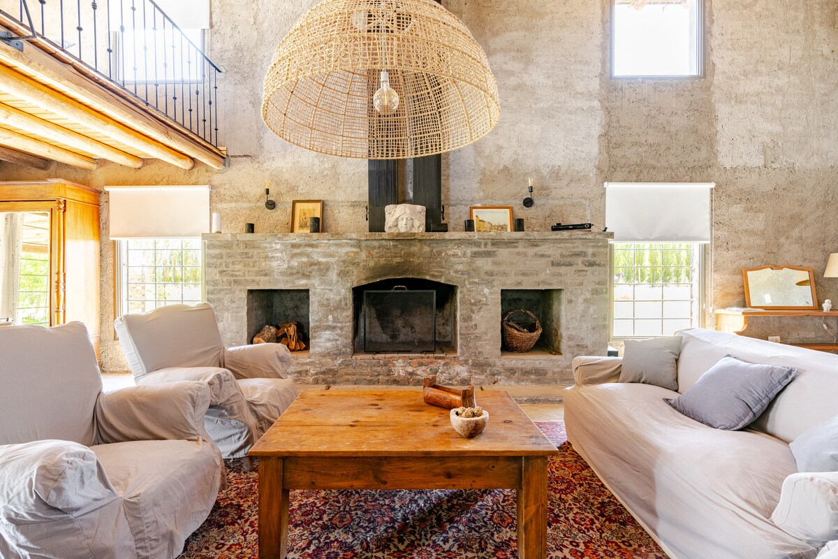 Completely recycled old house with modern details, spacious rooms with high ceilings located on a small estate with pinot noir, olive and fruit trees next to the Mendoza River. A place of tranquility and peace just 25 minutes from downtown Mendoza, ideal for excursions to the mountains or visits to wineries, but above all to rest and enjoy the beautiful surroundings, the proximity of the river and the pool with incredible views over vineyards and the Andes Mountains!
