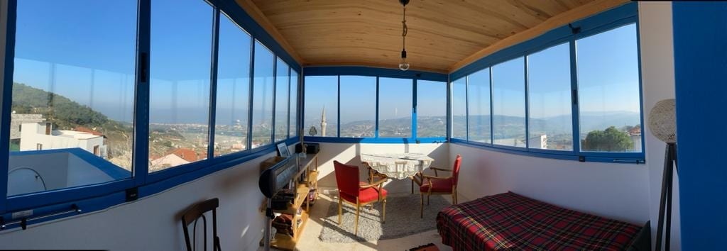 Pine and fruit trees around it, a unique sea view extending all the way to Lesbos... In this place, where you can find peace on the veranda among the chirping of birds and enjoy the sea on the beach within walking distance (400 m.), you are welcome to spend a cool summer with the breezes blowing on the lush green Fula hills and discover the historical and cultural riches of Foça...
