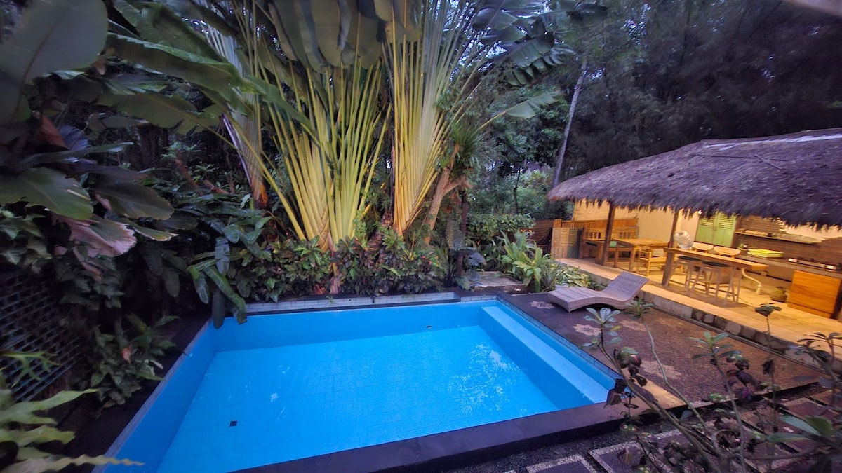 Enjoying serenity while easy access to everything from this centrally located place. The pool is offered as A shared pool for guests. A quiet residential area that minutes to popular vibes between Seminyak n Canggu. Less traffic compare to both to airport and others of Bali. 7 villas in compound and has common ammenities , however mostly are longstaying guest and busy working so the pool n other commonn ammenities that is overlooking from your dinning is likely only yours most of the time