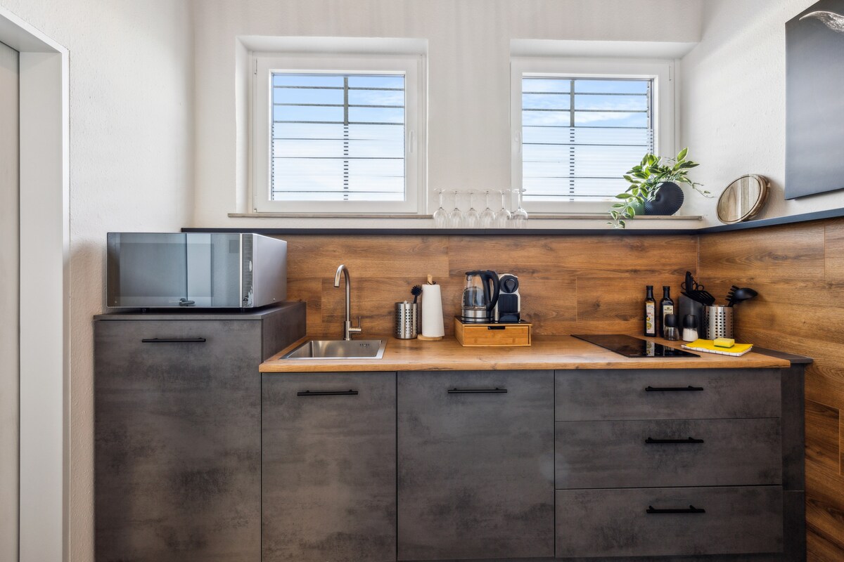 Willkommen in deiner idealen Unterkunft! Diese Wohnung kombiniert stilvolles Design mit praktischen Annehmlichkeiten für einen unvergesslichen Aufenthalt: Der modern eingerichtete Wohnbereich besticht durch harmonische Farben und stilvolle Details, während die Küche mit hochwertiger Ausstattung überzeugt. Genieße die Kombination aus Komfort, Design und idealer Lage.