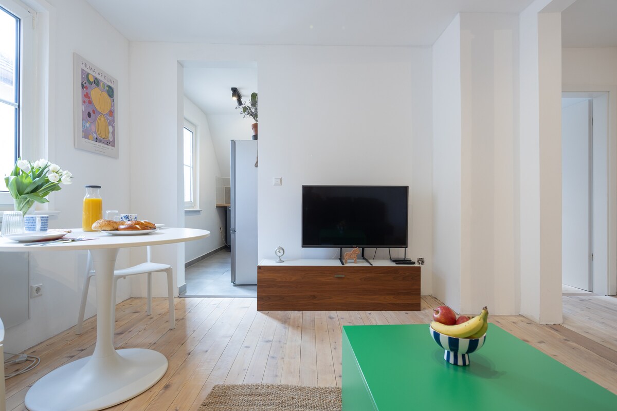 This modern and cozy apartment in Stuttgart West offers everything you need for a relaxed and pleasant stay. A spacious living- and dining room, two separate bedrooms, two big 55” Samsung smart TVs, Sonos sound system, and a very well equipped kitchen. The apartment is the ideal starting point to discover Stuttgart. Anything you need is just around the block: train and bus stations, grocery stores, coffee shops, restaurants and bars.