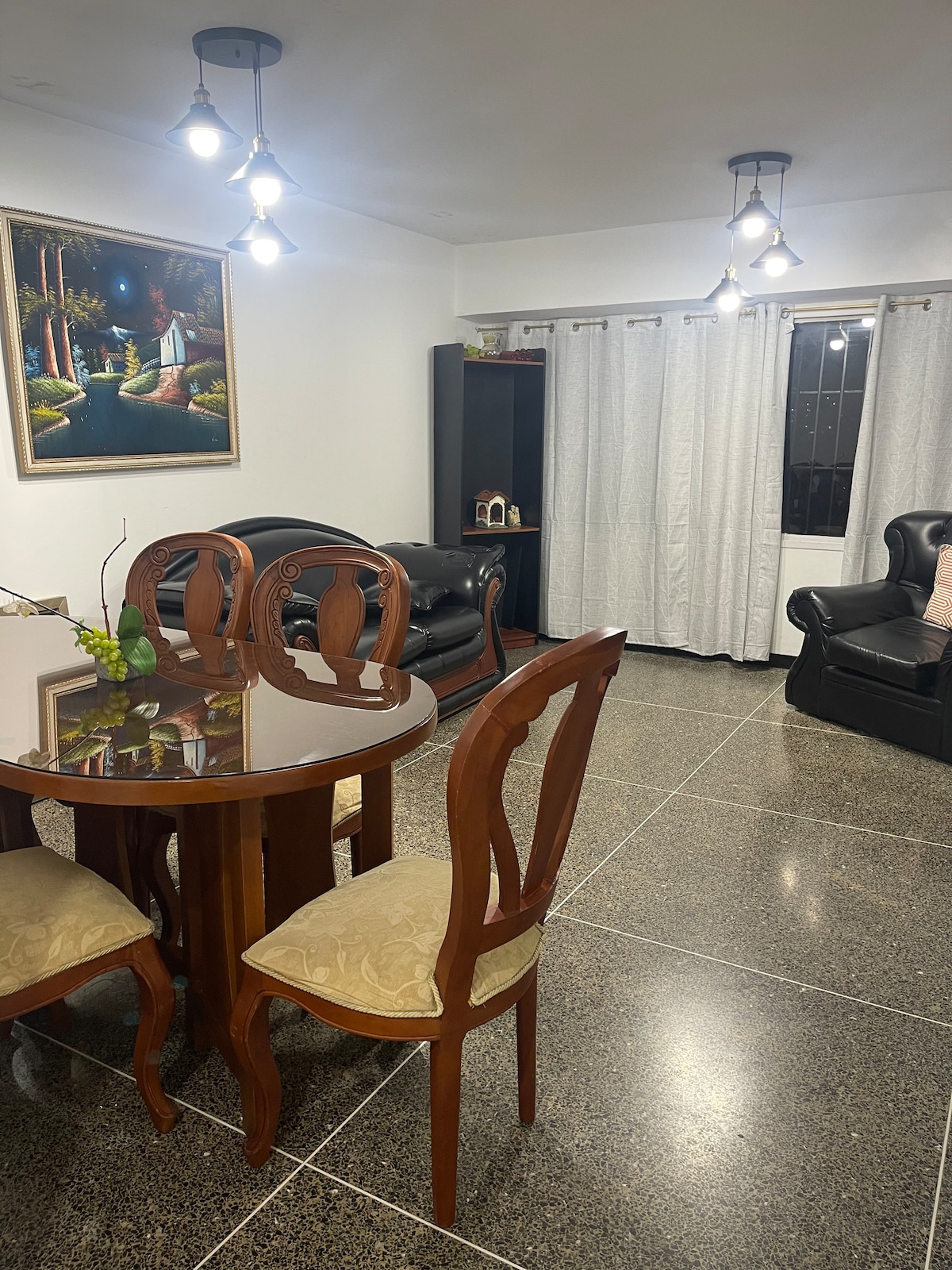 Apartment located in the city center, close to supermarkets, cable car, main market and Plaza Bolivar. With all the basic amenities, emergency lamps, 2 air conditioners, Wi-Fi, UPS, and parking. The apartment has 1 queen bed, 2 single beds and a sofa bed, 2 bathrooms, 1 studio-type balcony, dining room, 50” TV, equipped kitchen: fridge, blender, coffee maker, microwave, utensils, heater, washer and dryer. Towels and bedding are provided