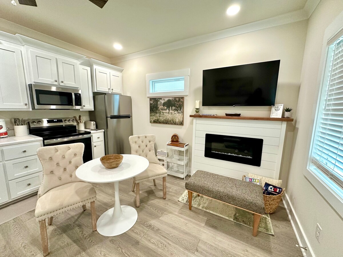 Private retreat just 9 minutes from downtown Huntsville, AL. This former meat-smoking house has been fully renovated into a stylish modern farmhouse studio. Enjoy peaceful views of grazing horses and Monte Sano Mountain from your windows. Inside, you’ll find all the modern luxuries: an adjustable Purple queen mattress, blazing fast WiFi, smart TVs with Roku, brand-new appliances, and a spotless, welcoming space. Don’t miss your chance to relax at this unique hideaway just off Hwy 72.